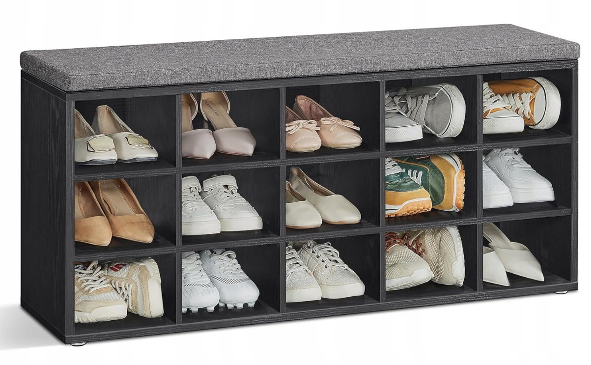 - ✴️【SOLIDNA I WYTRZYMAŁA】Ta ławka na buty, wykonana z wysokiej jakości płyty wiórowej o grubości 15 mm, jest wytrzymała i wytrzymuje obciążenie do 200 kg. Możesz na niej usiąść, nie martwiąc się o chwianie się lub skrzypienie. Sześć nóżek na spodzie chroni podłogę przed zarysowaniami.
