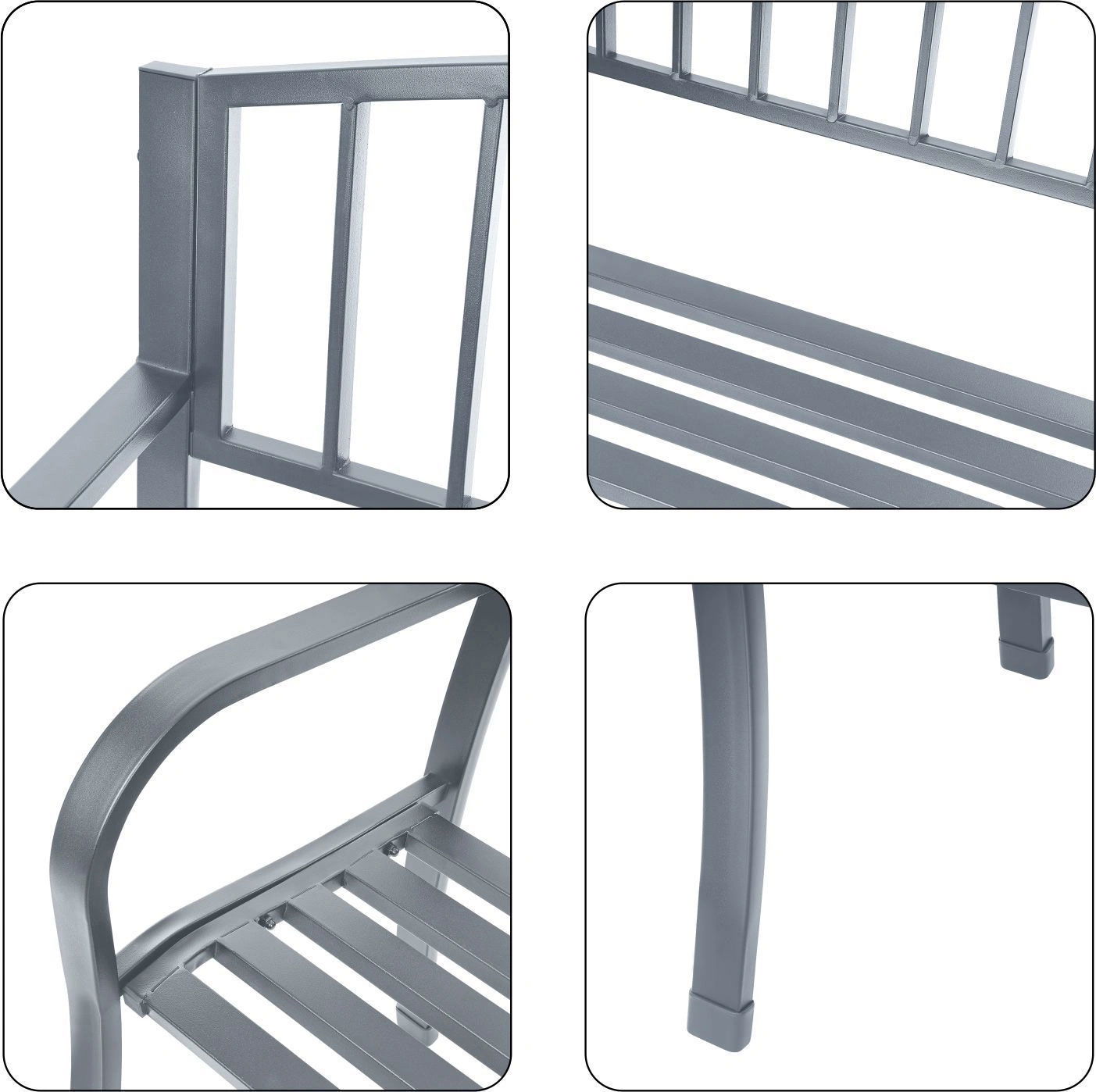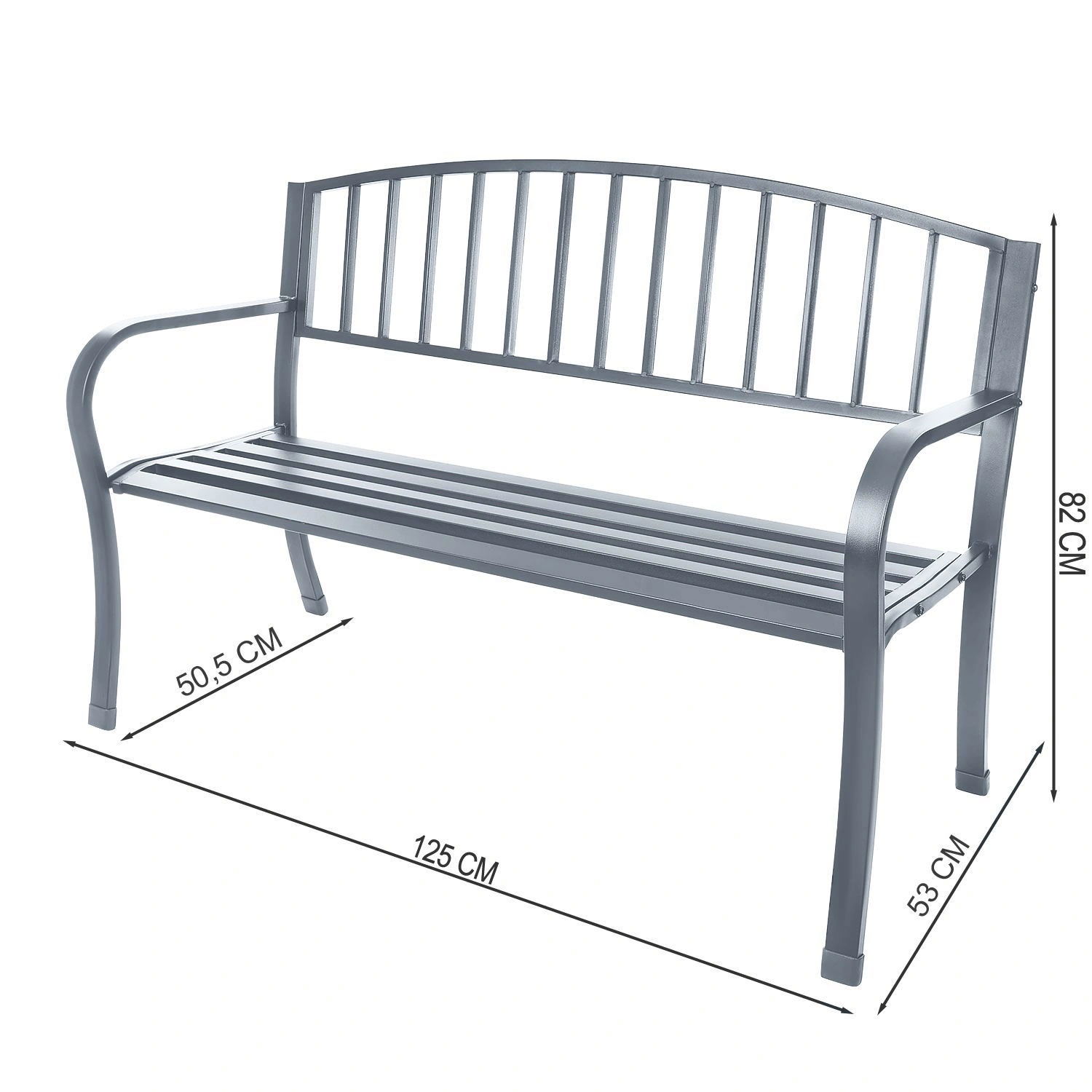 Ławka ogrodowa z oparciem parkowa na taras balkon metalowa konstrukcja grafitowa