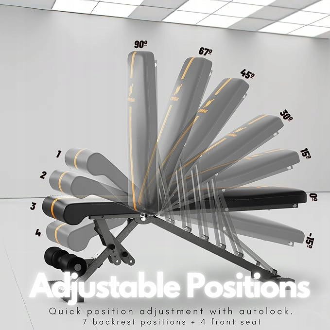 Składana Regulowana Ławka do Podnoszenia Ciężarów | 90 Stopni, Skośna, Odwrotnie Skośna, Płaska | Gotowa do Użycia | Kompatybilna z Zestawami Hantli | Ławki do Siłowni Domowej | Ćwiczenia