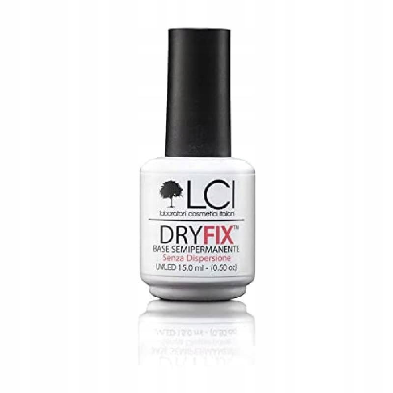 LCI Cosmetics DryFix nie wyciera się, półpermanentny lakier bazowy wysycha bez lepkiej dyspersji i nadaje mu więcej połysku. Dalszy rozwój górnej części brokatowej DryFix, innowacyjnej formuły, która nie uwalnia klejącej dyspersji po wyschnięciu, co z kolei zatrzymuje resztki bawełny; znacznie zmniejsza czas manicure; zapobiega zahaczaniu się kolorów w pobliżu skórek, a dzięki technologii DryFix najmniej kryjące kolory nie są potrzebne więcej niż 3 kroki. Kolor przezroczysty.