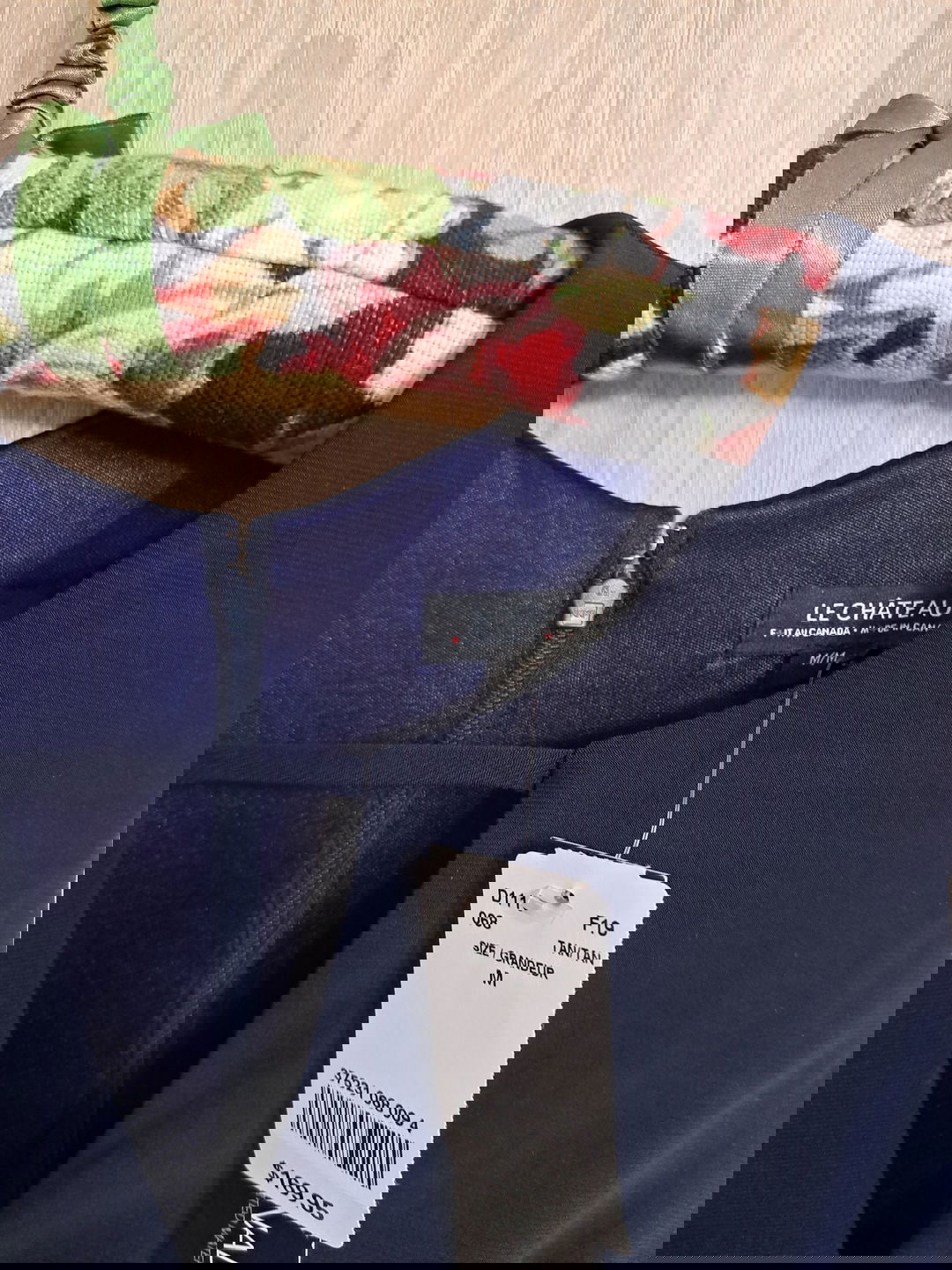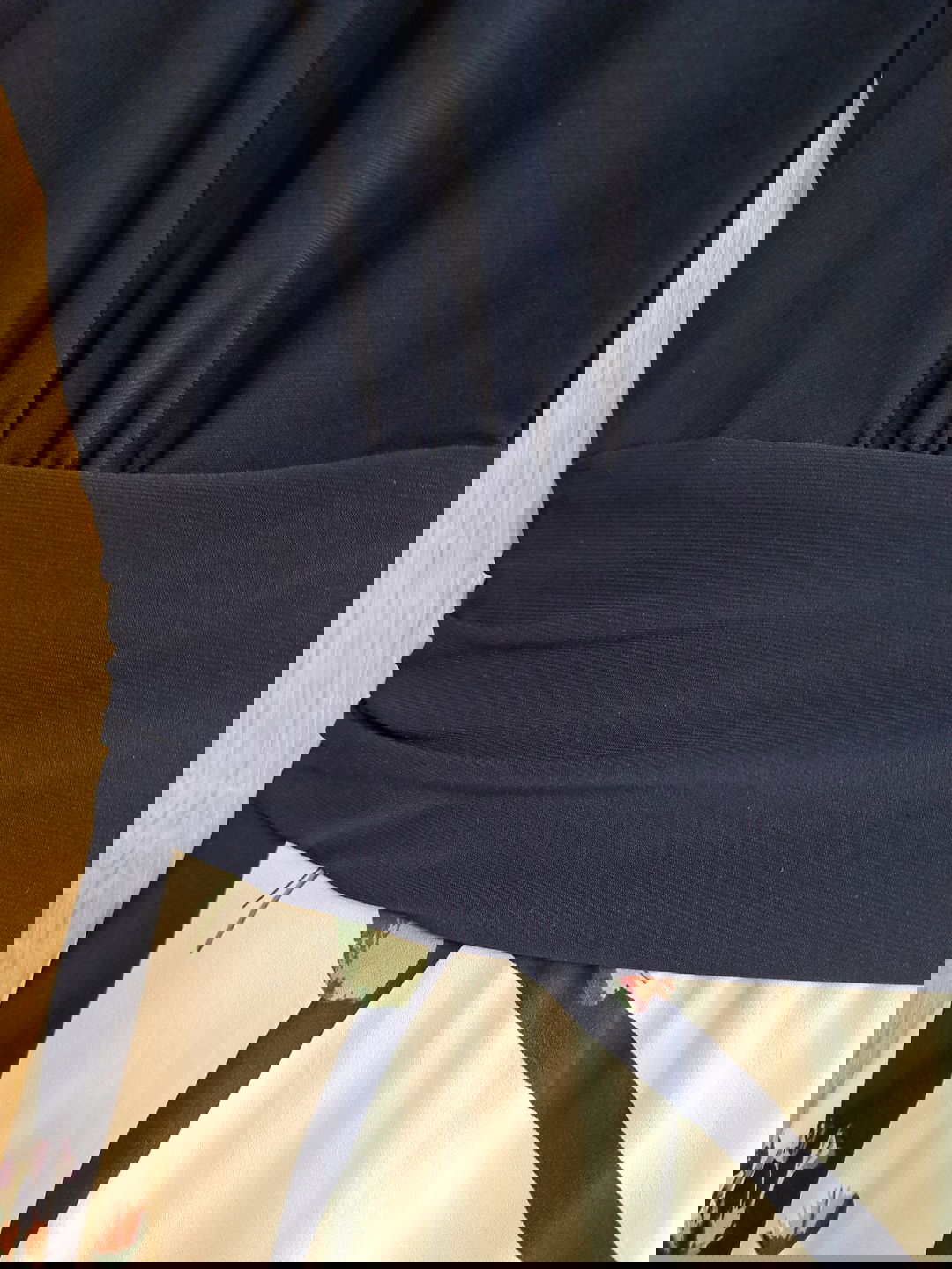 LE CHATEAU Canada lejąca granatowa sukienka koktajlowa kontrastowy dół S/M