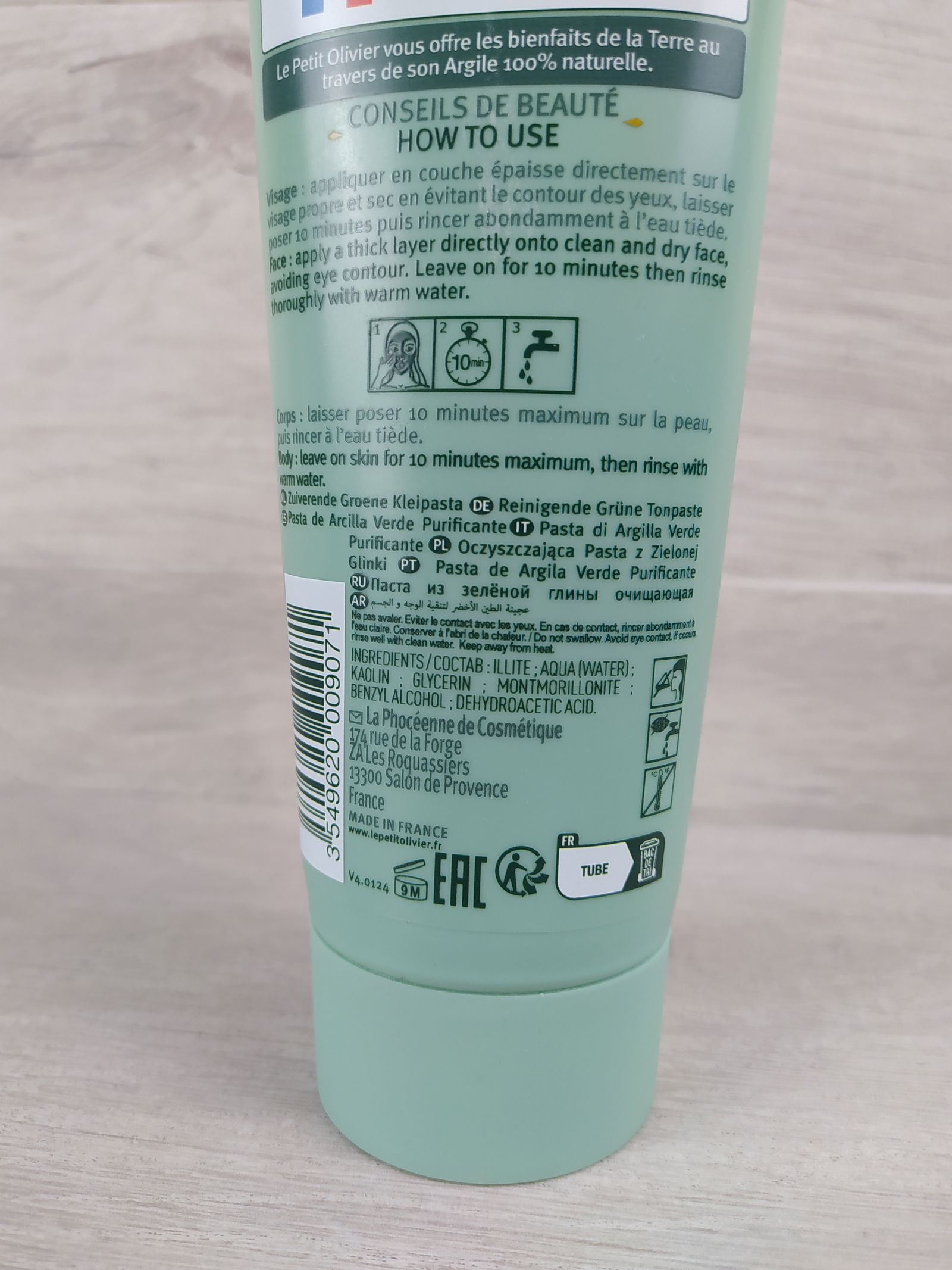 Le Petit Olivier glinka zielona pasta 300g do twarzy ciała oczyszczanie