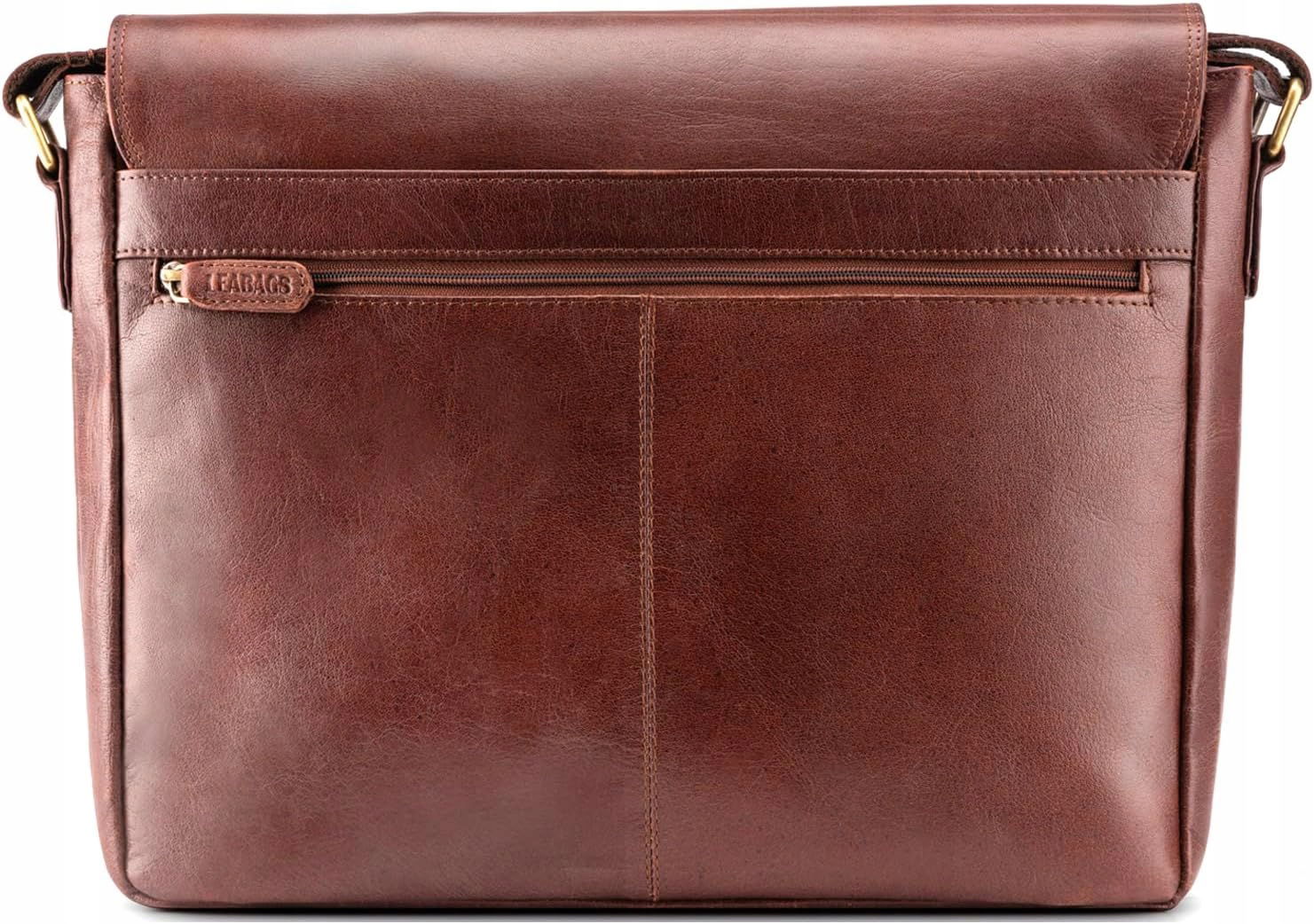 LEABAGS Oxford torba na ramię skórzana torba na laptopa 15 cali wykonana z prawdziwej skóry bydlęcej w stylu vintage, (dł. x szer. x wys.): ok. 39x10x31 cm - aksamitny brąz - gładka skóra