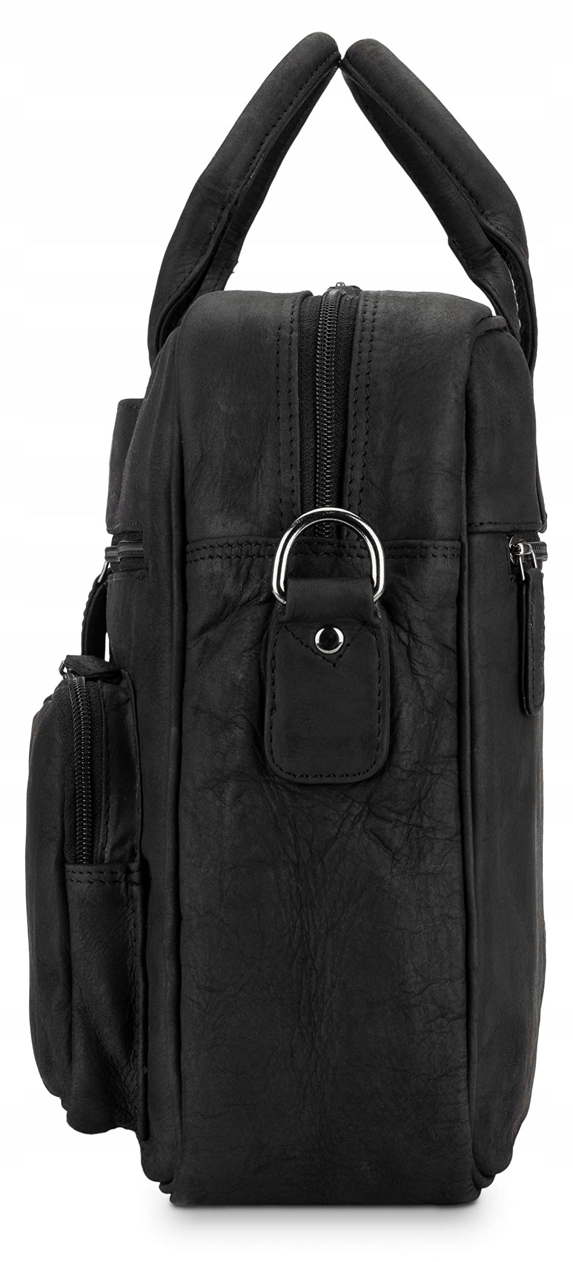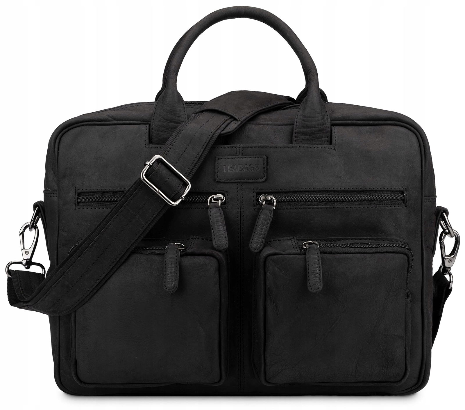 LEABAGS Torba dla mężczyzn i kobiet, przenośna torba z prawdziwej skóry 15" | Torba na ramię z paskiem | Torba na ramię | Torba na ramię | Torba robocza | Torba nauczycielska, Natura Czarny, Taille
