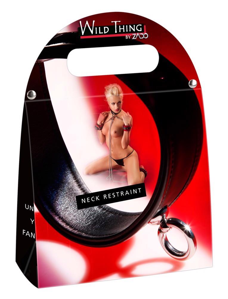 Dzikie i seksowne! Szeroki na 4 cm, wysokiej jakości, obrobiony mankiet na szyję z ozdobnym pierścieniem na małym drążku. Długość 45 cm, z zapięciem na klamrę regulowanym od 32-50 cm.