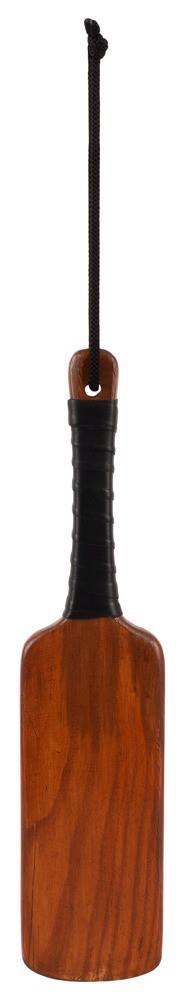 The powerful classic made of solid wood! High-quality robust spanking paddle by ZADO made of solid wood with beautiful grain (varies). The leather-wrapped handle, as well as the leather wrist strap, ensures a firm grip during the consensual chastising spanking.