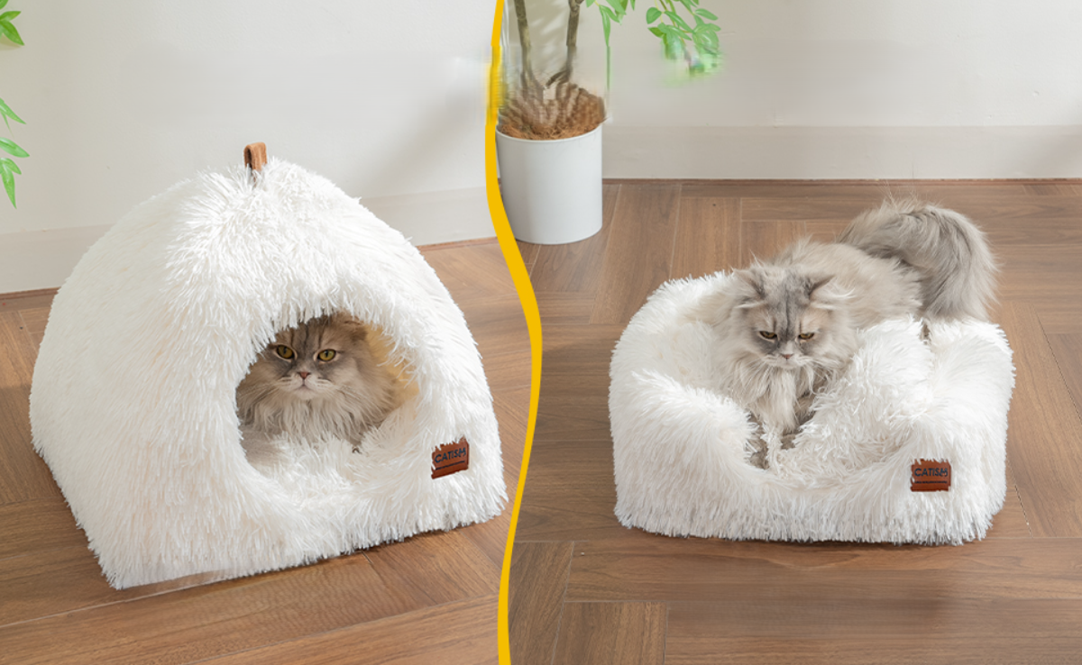 ➡️ Legowisko CATISM Jaskinia Igloo 2w1 – zaprojektowane z myślą o maksymalnym komforcie i funkcjonalności!