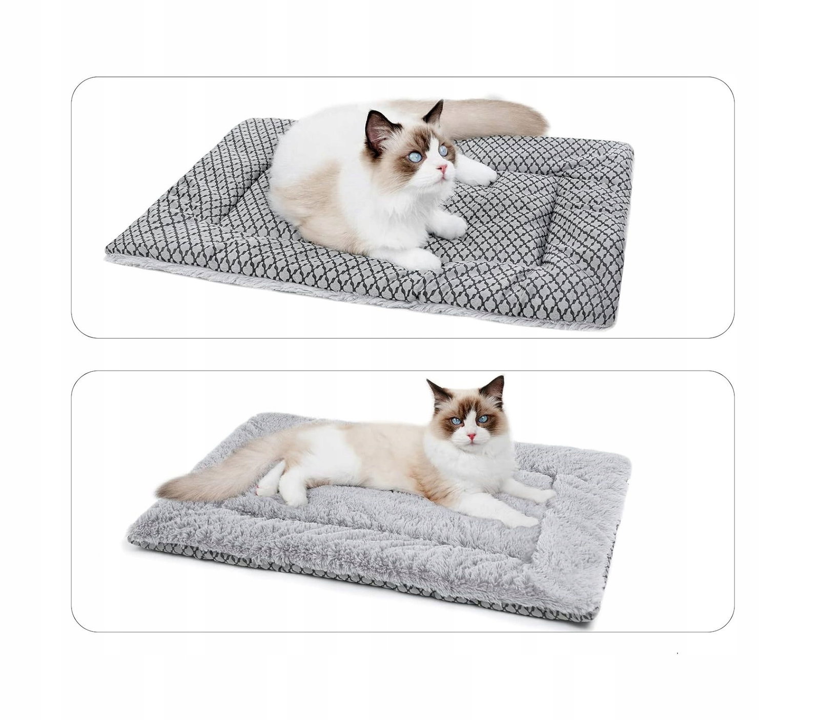 Mata 2 w 1 praktyczna, prosta i ma podwójne zastosowanie: można jej używać jako maty lub łatwo złożyć w legowisko. Pluszowa strona zapewni Twojemu pupilowi ciepło i przytulność zimą. Gładka powierzchnia, antypoślizgowa, odporna na plamy, oddychająca, zapewni Twojemu pupilowi chłód latem.