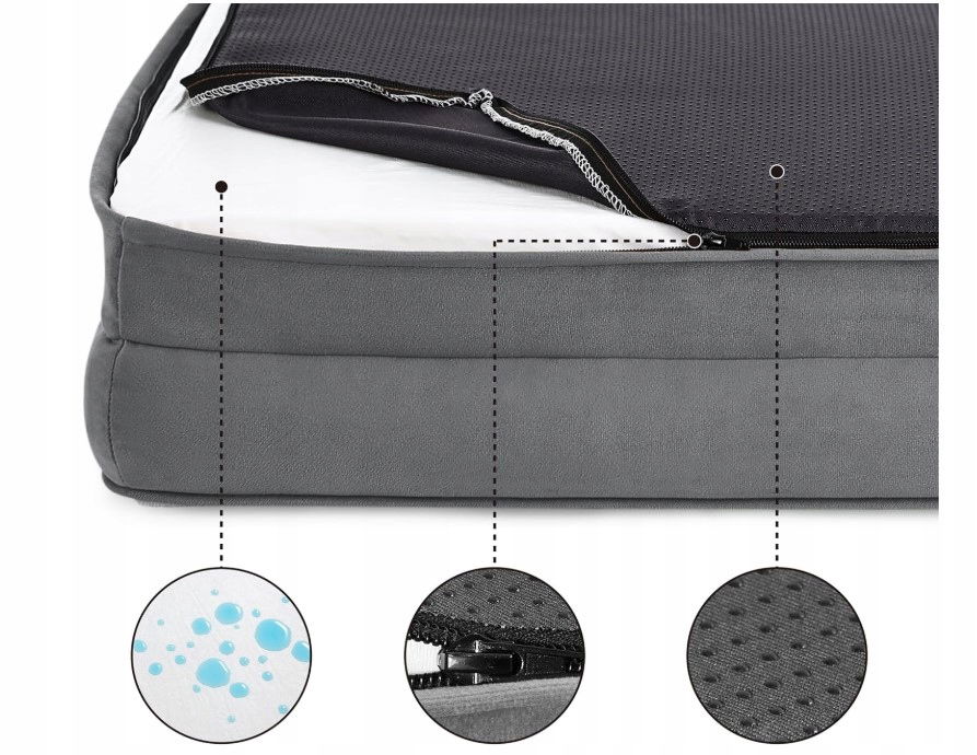 ✅Antypoślizgowy spód: Zapobiega przesuwaniu się legowiska, co zwiększa bezpieczeństwo użytkowania.
