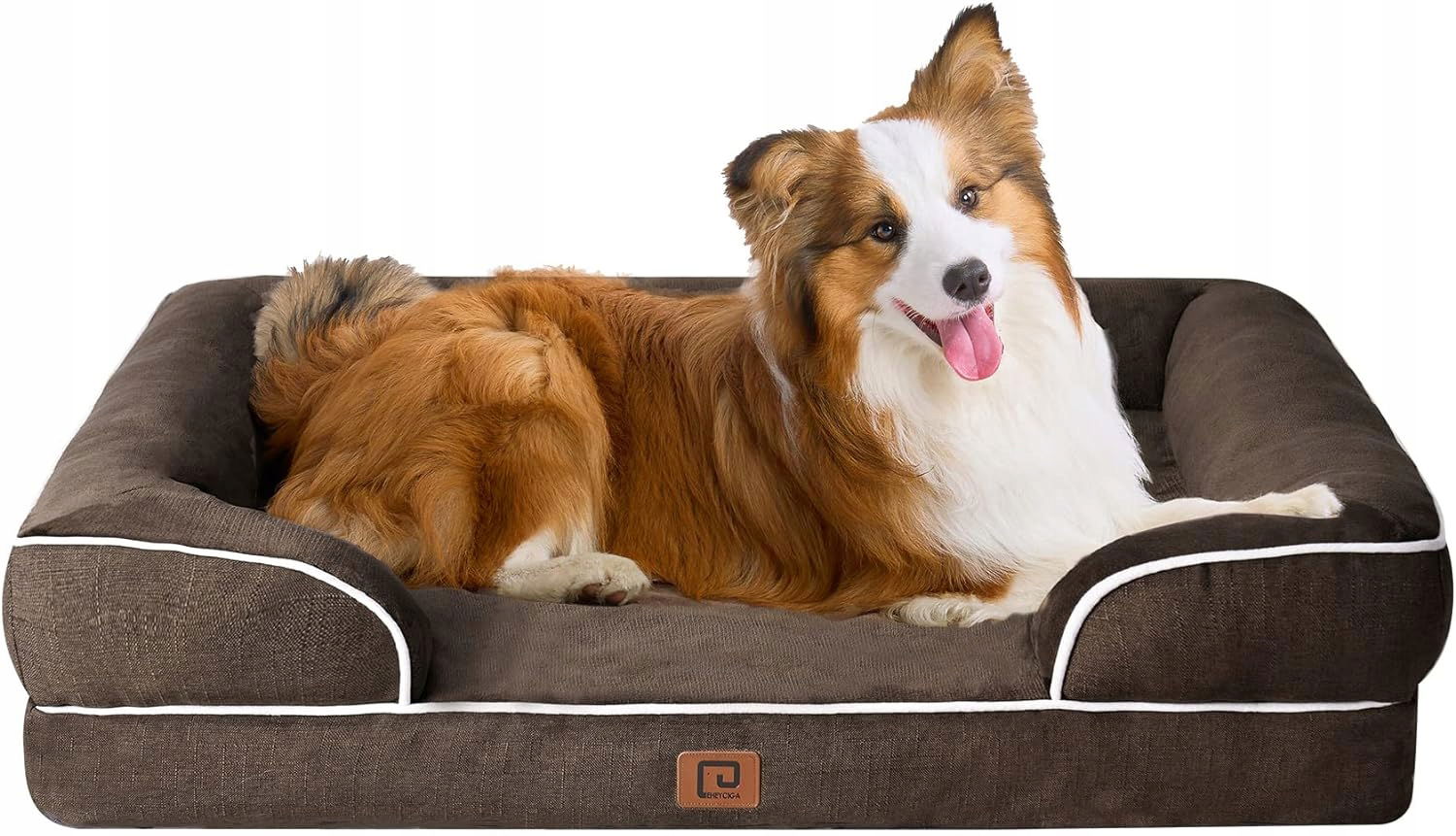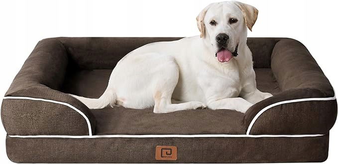 DWUSTRONNA KONSTRUKCJA : Pianka skorupki jajka wewnątrz naszej sofy dla psa to połączenie pianki skorupki jajka i pianki memory. Strona o kształcie skorupki jajka rozprowadza nacisk, a strona z pianką memory jest bardziej miękka i wygodniejsza, ponieważ powoli powraca do pierwotnego kształtu.