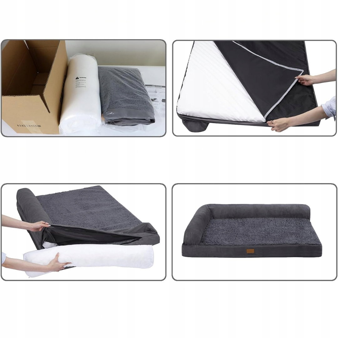 - Wodoodporne i łatwe w czyszczeniu: wodoodporna warstwa wewnętrzna chroni piankę przed wilgocią i zabrudzeniami, co wydłuża żywotność legowiska. Zewnętrzną poszewkę z zamkiem błyskawicznym można łatwo zdjąć i wyprać w pralce, co ułatwia utrzymanie czystości.