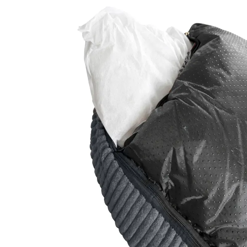 Legowisko wyposażone jest w zamek błyskawiczny, który umożliwia łatwe wyjęcie wypełnienia. Dzięki temu utrzymanie czystości jest proste, a pokrowiec można szybko odświeżyć. To praktyczne rozwiązanie na co dzień.