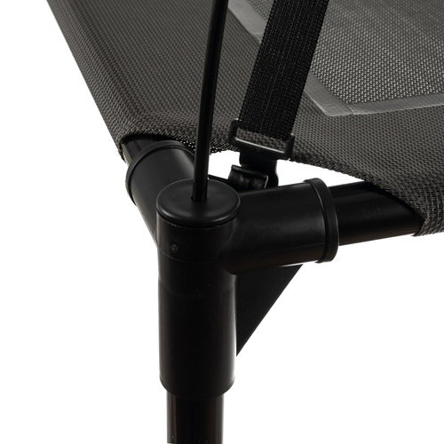 podwyższona konstrukcja – to 18 cm nad ziemią oraz przewiewna mata siatkowa gwarantują doskonałą cyrkulację powietrza i przyjemny chłód nawet w upalne dni