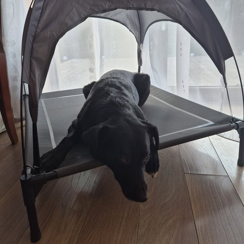 Zadaszone legowisko dla psa XXL podwyższone z matą i wodoodpornym daszkiem – idealne na taras, balkon, plażę i do ogrodu!