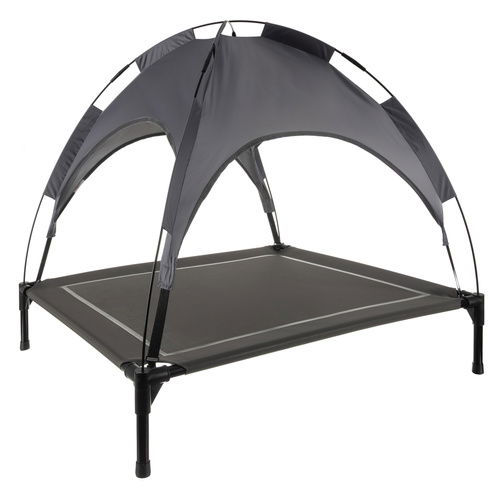 Zadaszone legowisko dla psa XXL podwyższone z matą i wodoodpornym daszkiem – idealne na taras, balkon, plażę i do ogrodu!