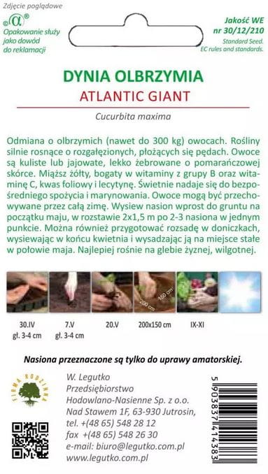 LEGUTKO NASIONA DYNI DYNIA POMARAŃCZOWA OLBRZYMIA ATLANTIC GIANT DO MARYNOWANIA