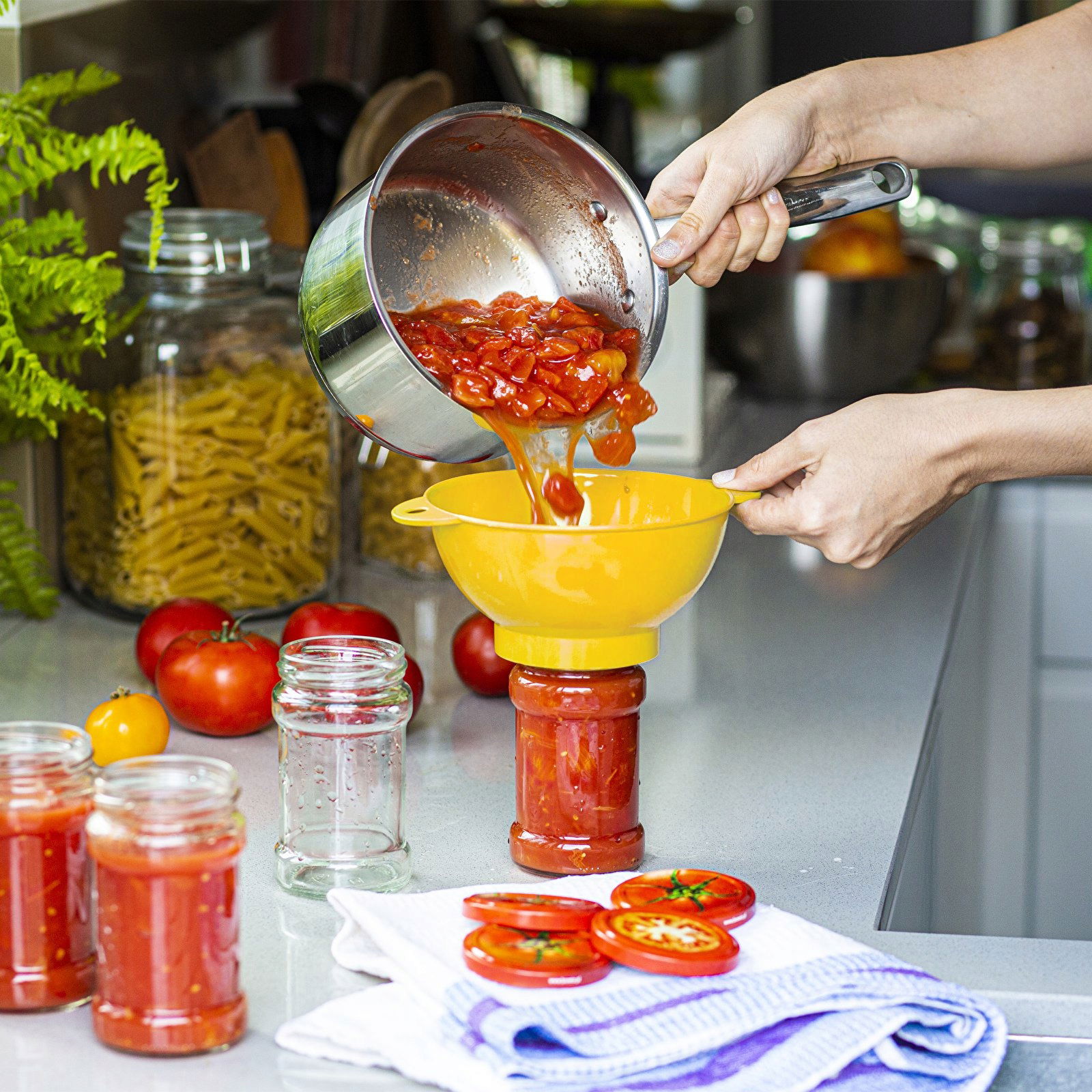 Lejek do słoików uzyteczny w kuchni jak również pomocny przy przygotowaniu przetworów domowych. Pasuję również do balonów 10-34L.