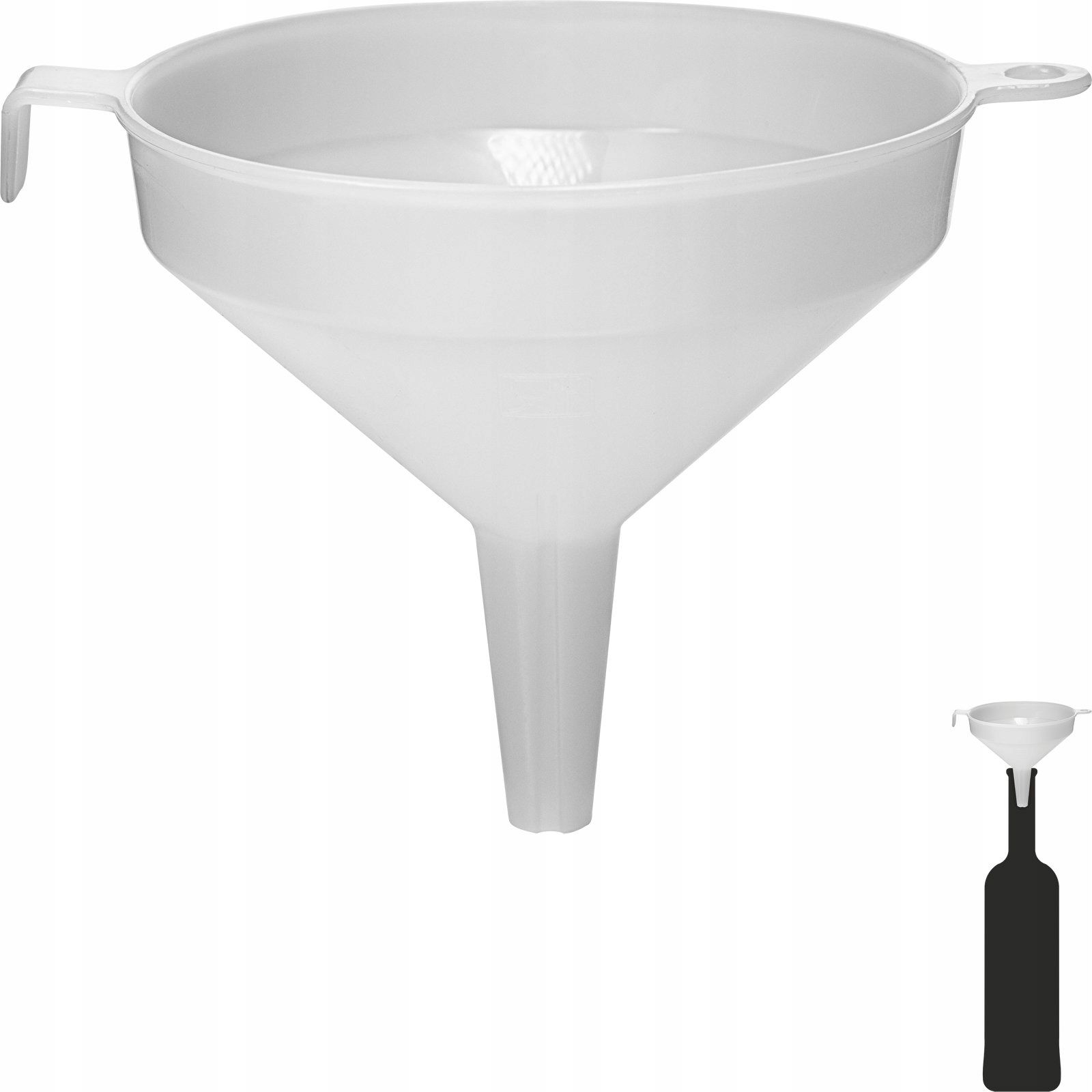 Trwały, wygodny w użyciu lejek. Przydatny do przygotowywania moszczu oraz nalewania wina do butelek.