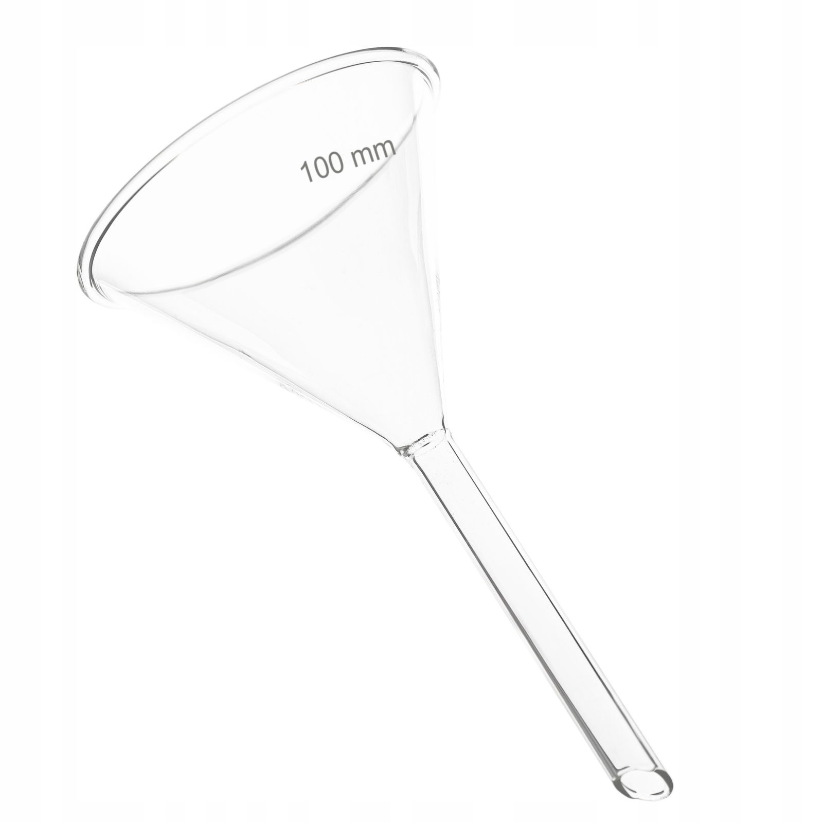 Uniwersalny szklany lejek laboratoryjny. Wykonany ze szkła borokrzemowego 3.3. Charakteryzuje się wysoką odpornością chemiczną i termiczną.Nóżka lejka została ścięta pod kątem 60 stopni aby umożliwić cieczy spływ jednolitym strumieniem. Płyn nie zatrzymuje się na lejku. Wykorzystywany jest głównie do przelewania płynów, umieszczając sączek bibułowy można go wykorzystać do filtracji.