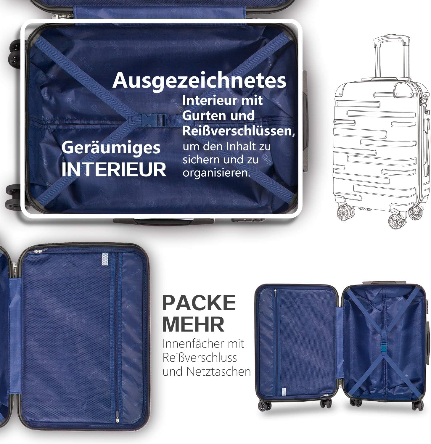 Zamek szyfrowy TSA zapewnia pełne bezpieczeństwo, a 4 obrotowe kółka sprawiają, że przemieszczanie się z walizką po lotnisku to czysta przyjemność.