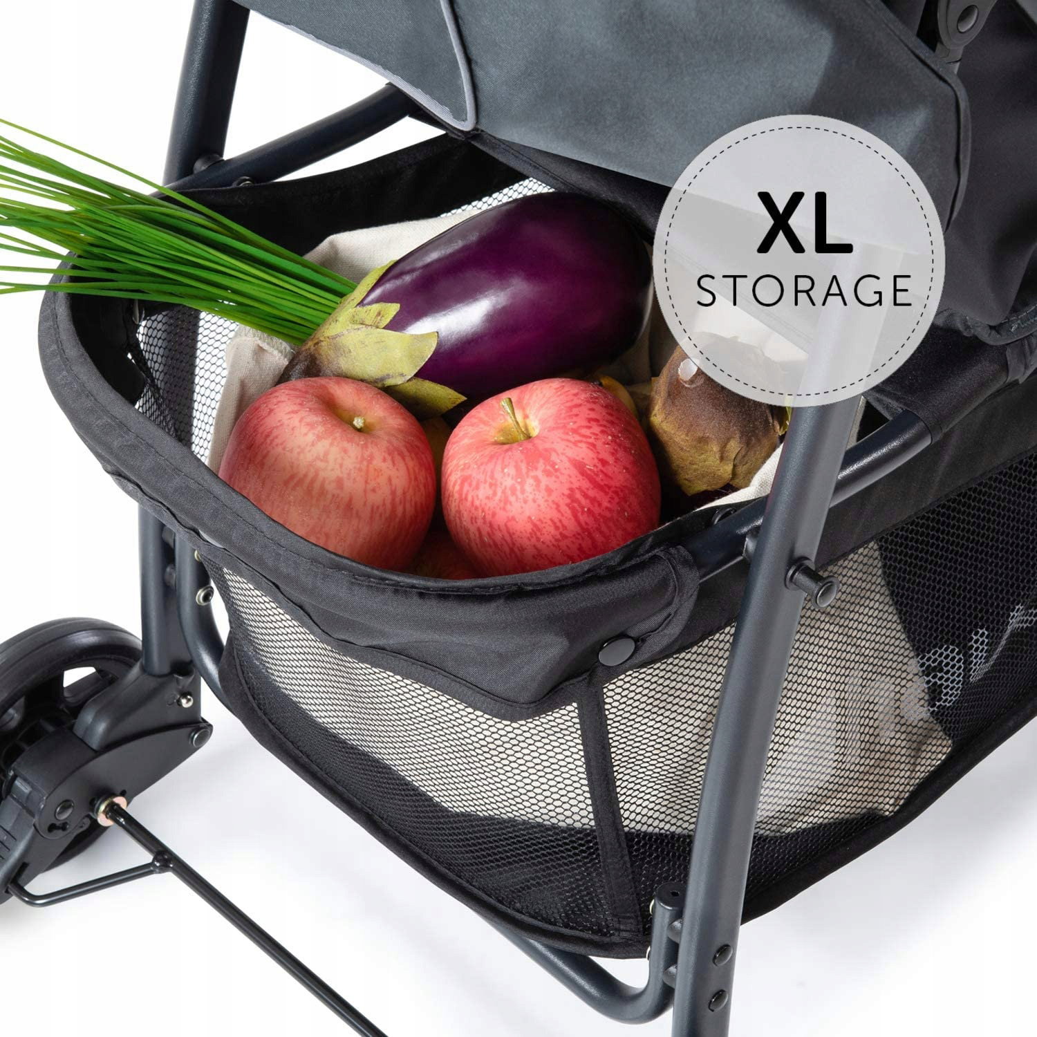 Kosz pomieści zarówno zakupy, jak i przydatne dziecięce akcesoria oraz zabawki.