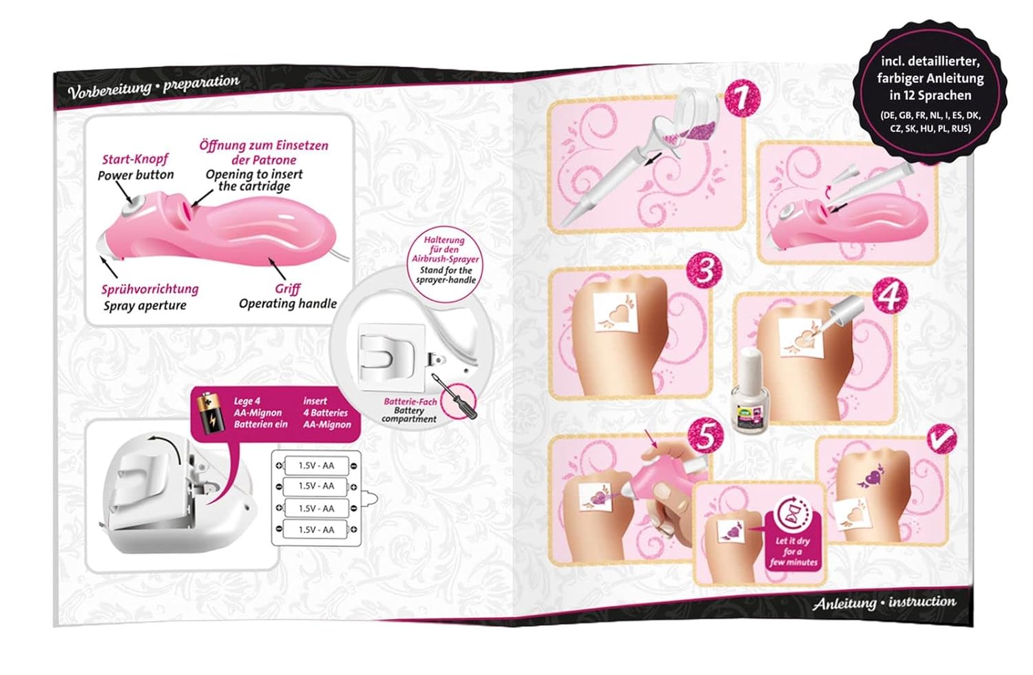 Airbrush pozwala rozprowadzić kolor równomiernie i szybko oraz pozwala swobodnie tworzyć tatuaż