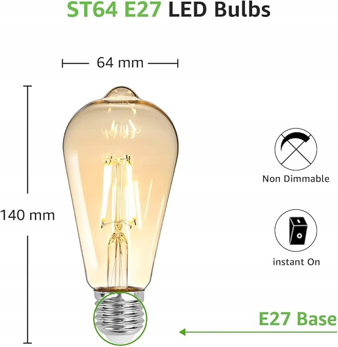 Łatwy w montażu: otrzymasz 6 żarówek vintage E27. Dioda ta wkręcana jest bezpośrednio w oprawkę E27.