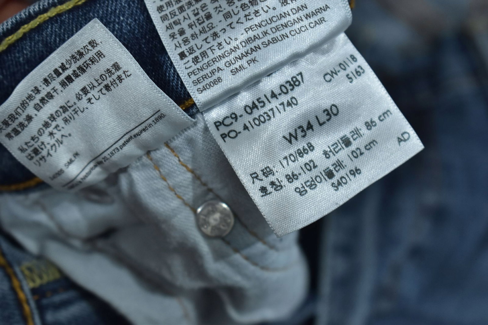- Rozmiar: W34 L30 (Szerokość w pasie: 45 cm, Długość całkowita: 100 cm, Szerokość nogawki na dole: 20 cm)