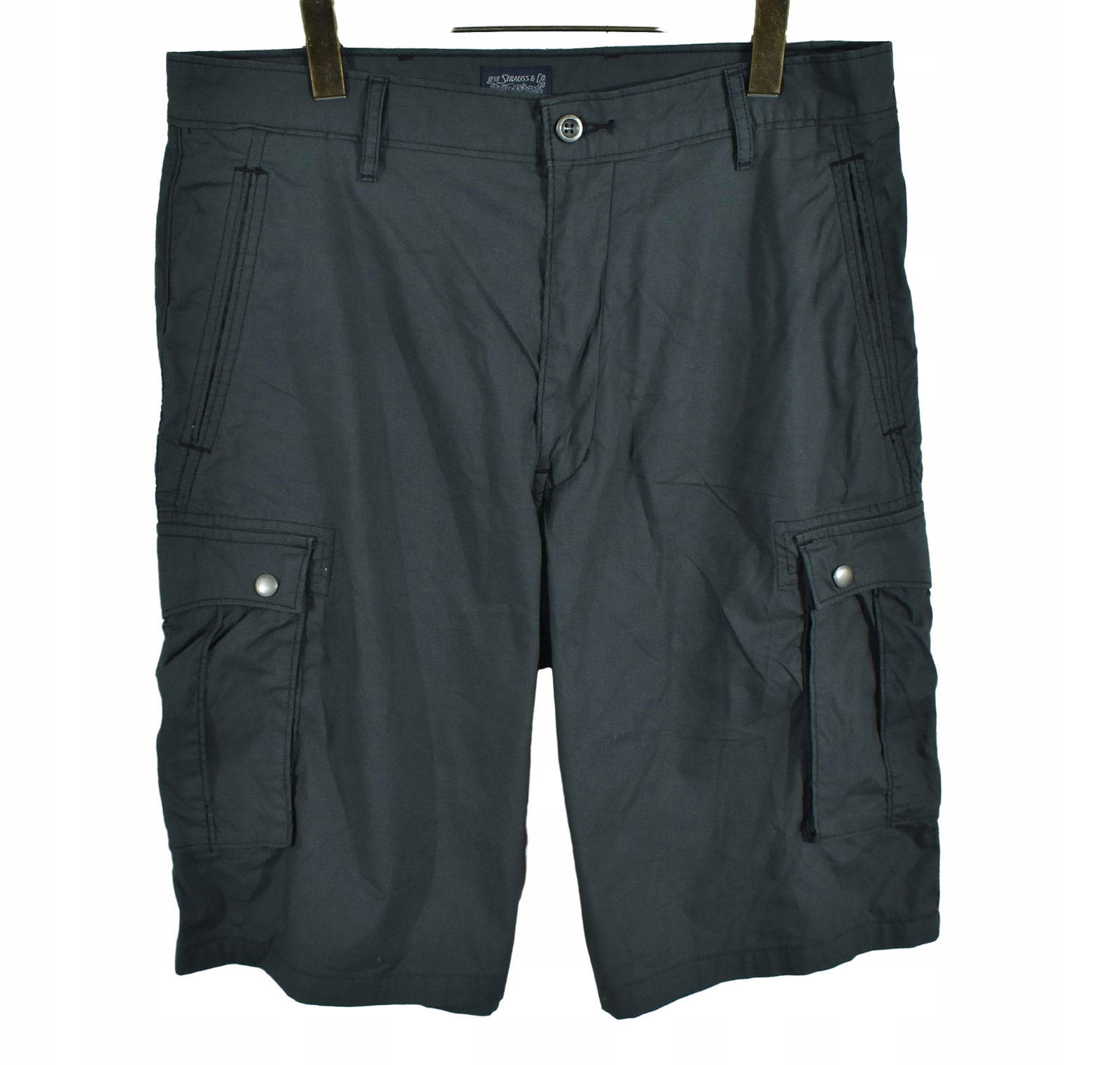 Oferujemy męskie spodenki cargo bermudy marki Levi's, idealne na ciepłe dni. Te używane spodenki w rozmiarze W34 są w doskonałym stanie (ocena 5/6), co sprawia, że stanowią świetny wybór dla osób poszukujących wygodnego i stylowego ubrania.