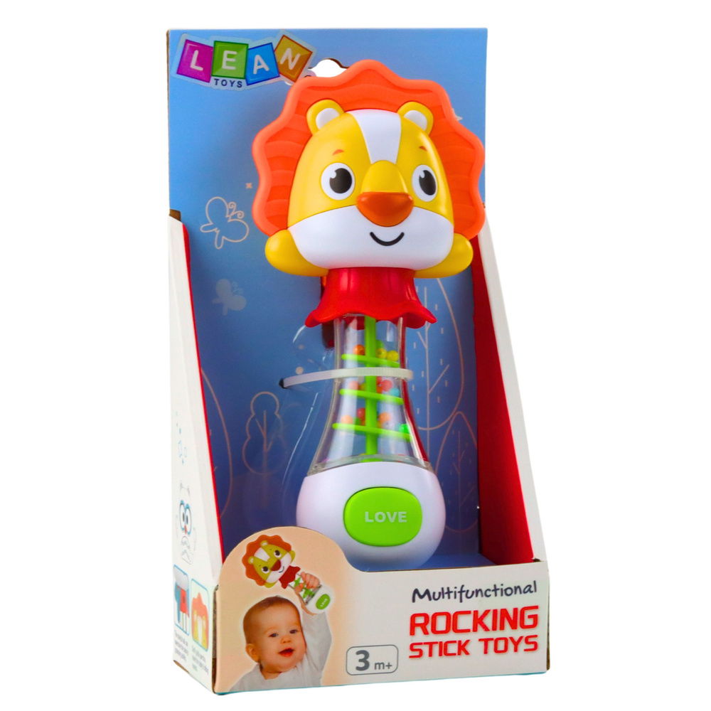 Niezwykle atrakcyjna grzechotka dla niemowlaka w kształcie lwa, z ruchomymi kolorowymi kuleczkami w środku. Wykonana z bezpiecznych materiałów, zaprojektowana tak, aby wspierać rozwój sensoryczny dziecka poprzez stymulację wzroku i słuchu. Doskonale rozwija motorykę małą oraz koordynację ręka-oko. Dzięki odpowiednio dopasowanemu kształtowi, maluch może pewnie chwytać i manipulować zabawką. Grzechotka jest lekka, posiada zaokrąglone krawędzie i jest łatwa w użytkowaniu. Wysokość zabawki wynosi 17 cm, a szerokość 6.2 cm. Produkt zapakowany jest w opakowanie o wymiarach 21.5 x 11.5 x 6.5 cm. W zestawie znajduje się jedna sztuka grzechotki w kształcie lwa.