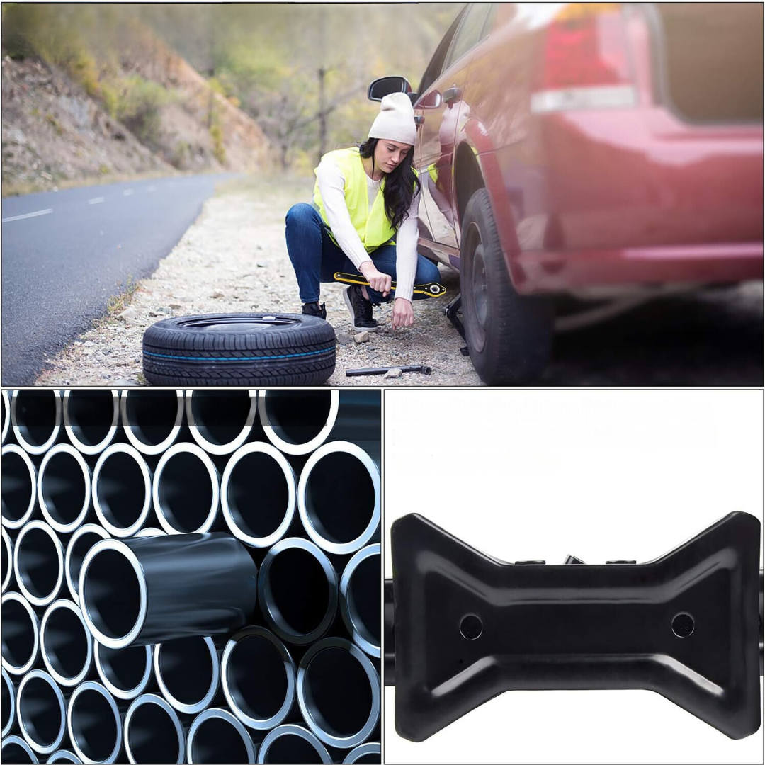 - Zastosowanie: podnośnik samochodowy służy do awaryjnego podnoszenia pojazdu w celu wymiany opony lub wykonania drobnych napraw. Konstrukcja podnośnika zapewnia stabilność i bezpieczeństwo podczas pracy, a kompaktowy rozmiar ułatwia przechowywanie i transportowanie w pojeździe.