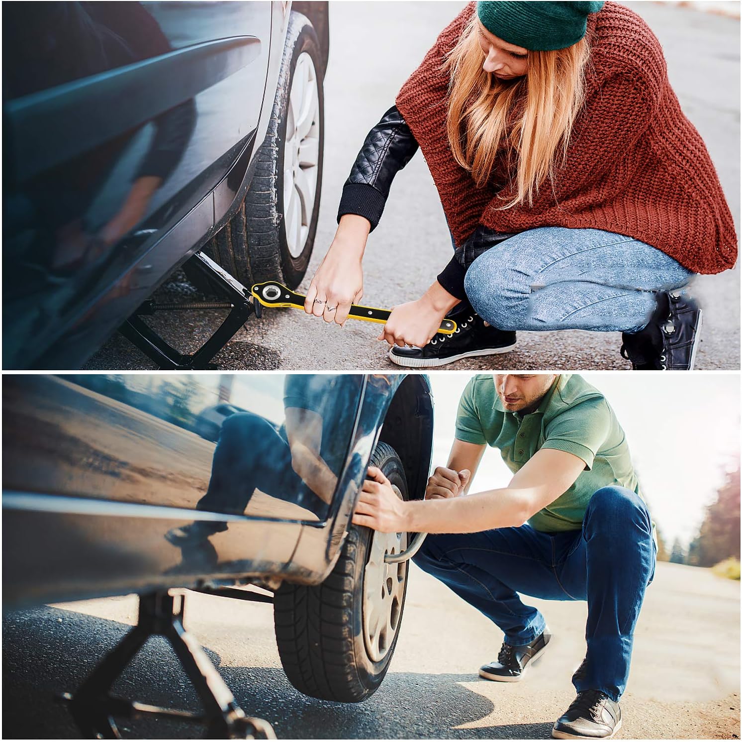 - Bezpieczne podnoszenie pojazdu: podnośnik umożliwia łatwe i bezpieczne ustawienie pojazdu na żądaną wysokość. Klucz zapadkowy sprawia, że wymiana koła jest wyjątkowo prosta, a ciężka płyta podstawowa zapewnia stabilność podczas użytkowania.