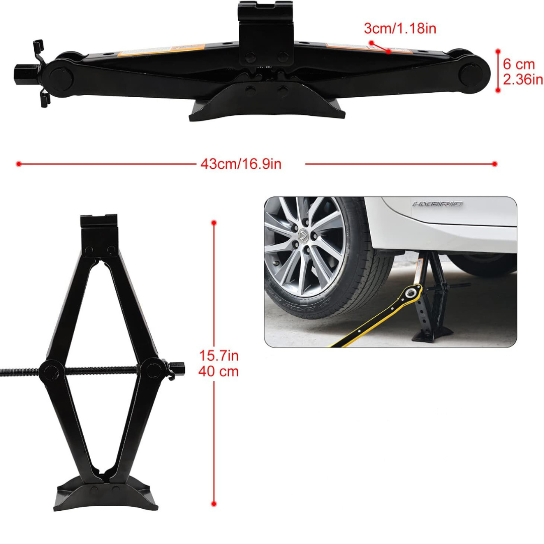 EXLECO Podnośnik nożycowy 2,5 t, podnośnik samochodowy, do SUV, manewrowy, z grzechotką, głowica 360°, z kluczem zapadkowym, do samochodów rodzinnych, samochodów osobowych, SUV, MPV.