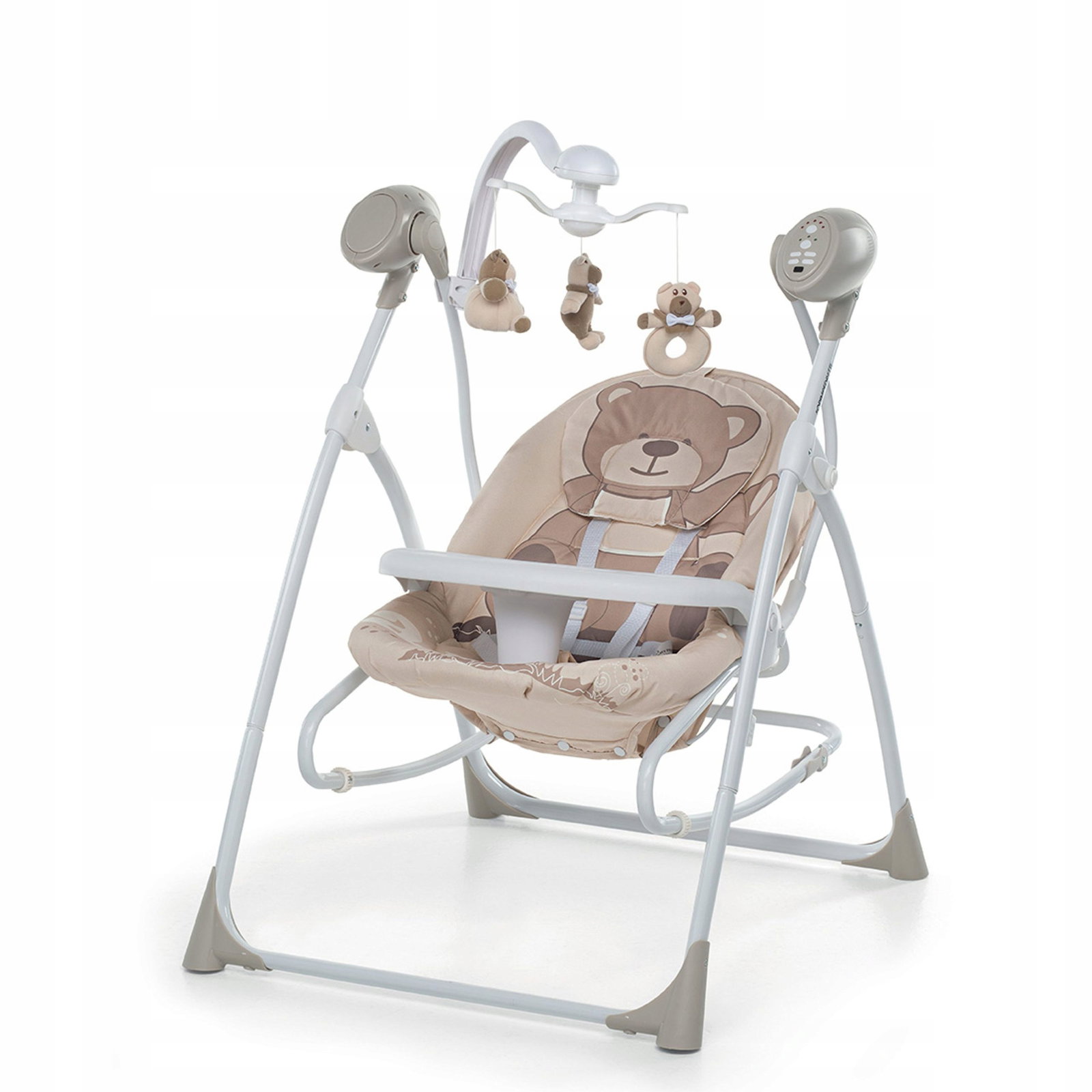 Wielofunkcyjny leżaczek-bujaczek Foppapedretti to idealne rozwiązanie dla Ciebie i Twojego dziecka. Ten muzyczny krzesło bujane nie tylko porusza się, ale także oferuje szeroką gamę melodii. To innowacyjne urządzenie można łatwo przekształcić w przytulne łóżeczko z miękkim materacem. Dzięki temu produktowi spełnisz wszystkie potrzeby Twojego dziecka i ułatwisz sobie życie jako rodzic. Możesz używać go w trzech trybach, zmieniając go jedną ręką: Leżaczek-bujaczek To bezpieczne miejsce dla Twojego malucha, w którym może się bawić. Po prostu podnieś oparcie do półleżącej pozycji, zamieniając łóżeczko w bujaczek i aktywne miejsce do zabawy. Łóżeczko Z łatwością możesz zmienić pozycję leżaczka na leżącą, tworząc wygodne i bezpieczne łóżeczko z miękkim materacem, które przypomina gondolkę wózka. Krzesełko Podnosząc oparcie do maksymalnej wysokości, zamieniasz leżaczek w stabilne krzesełko do karmienia dziecka. Dodatkowo, leżaczek ma wiele innych zalet: - Możliwość ustawienia w 3 pozycjach. - Możliwość bujania lub ustawienia w pozycji stabilnej. - Urocze zawieszki i zabawne melodie. - Muzyka aktywowana przez dziecko, gdy złapie jedną z zabawek. - Łatwa obsługa. Jeśli Twoje dziecko cierpi na refluks, pozycja półleżąca jest idealna i może pomóc w łatwiejszym trawieniu pokarmu. Wymiary produktu w pozycji rozłożonej to 94,5 cm x 74,5 cm x 67 cm, a waga wynosi 7,5 kg. Oprócz tego, leżaczek-bujaczek Foppapedretti oferuje wiele dodatkowych funkcji, które ułatwią Ci opiekę nad dzieckiem: - 5 prędkości systemu kołysania. - Zdejmowana tacka. - Regulowane oparcie. - Pilot dołączony do zestawu. - Kontroler z automatycznym wyłącznikiem czasowym (15 – 30 – 60 min) i 16 różnych melodii. - Ruchoma karuzela z miękkimi zabawkami i lampka z różnokolorowymi światełkami. Foppapedretti to renomowana marka, która dba o komfort i bezpieczeństwo Twojego dziecka. Ten leżaczek-bujaczek jest doskonałym przykładem innowacyjnych rozwiązań, które ułatwią Ci codzienne życie jako rodzica. Nie wahaj się i zainwestuj w ten uniwersalny produkt, który spełni wszystkie Twoje oczekiwania. Zdjęcia produktu: - 5 prędkości systemu kołysania. - Zdejmowana tacka. - Regulowane oparcie. - Pilot dołączony do zestawu. - Kontroler z automatycznym wyłącznikiem czasowym (15 – 30 – 60 min) i 16 różnych melodii. - Ruchoma karuzela z miękkimi zabawkami i lampka z różnokolorowymi światełkami. Foppapedretti to marka, która zyskała zaufanie rodziców na całym świecie. Jej produkty są nie tylko funkcjonalne, ale także pięknie wykonane i trwałe. Niezależnie od tego, czy szukasz leżaczka-bujaczka, łóżeczka czy krzesełka do karmienia, Foppapedretti ma idealne rozwiązanie dla Ciebie