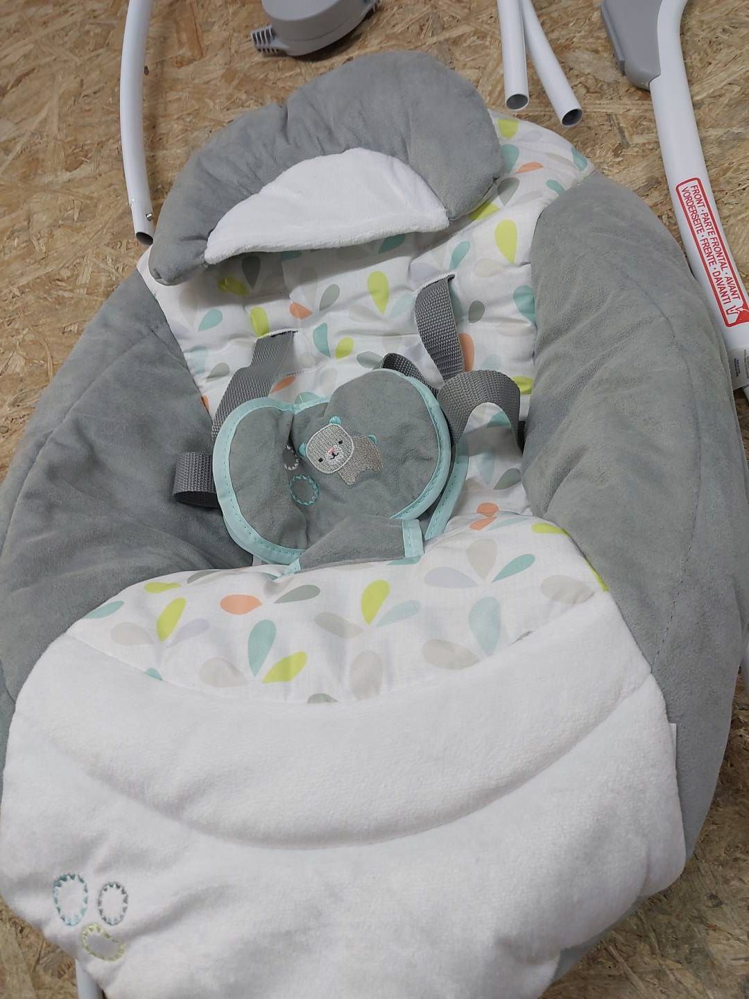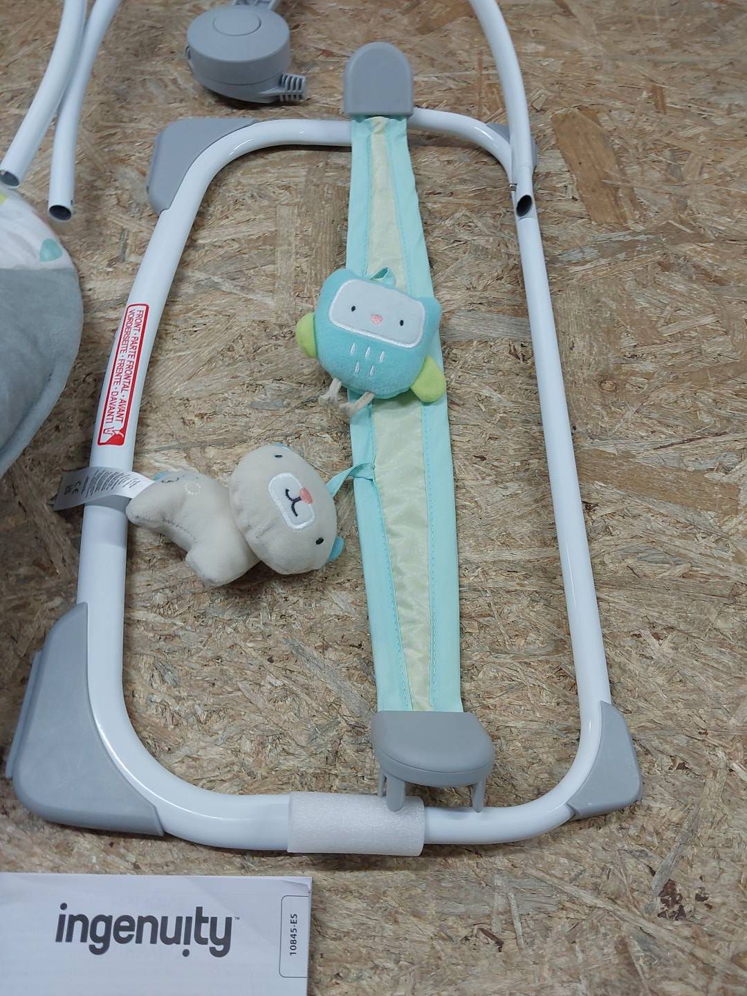 Wieszak na zabawki z 2 pluszowymi zabawkami można zdjąć, aby łatwo włożyć i wyjąć dziecko