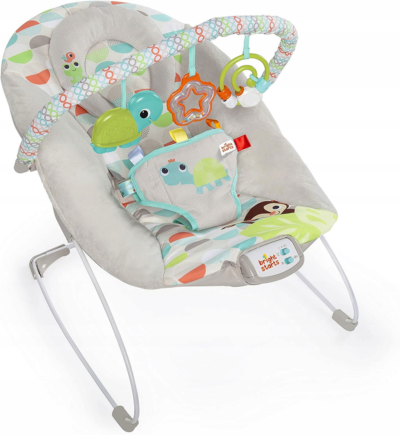 Leżaczek wibracyjny Happy Safari to idealne miejsce odpoczynku dla malucha, łączące wygodę, bezpieczeństwo i funkcje uspokajające. Dzięki kojącym wibracjom oraz delikatnym melodiom leżaczek pomaga wyciszyć i zrelaksować dziecko w ciągu dnia.