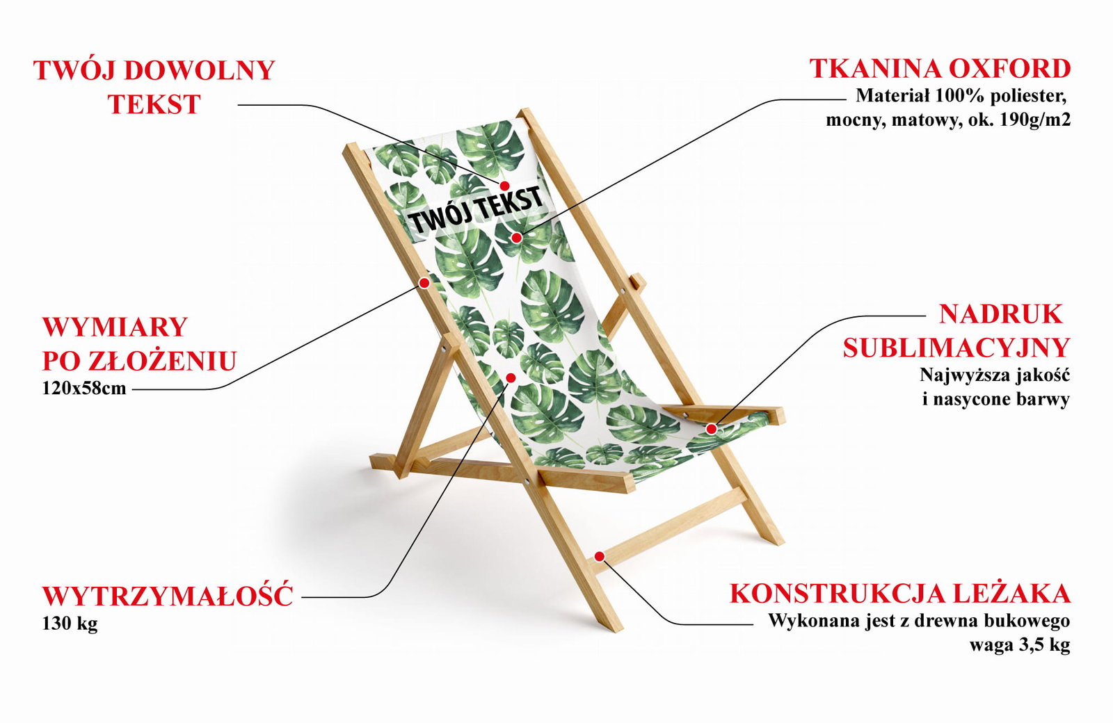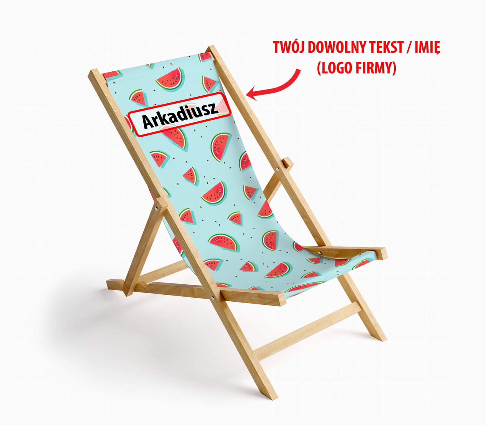 - Tekst na grafikę: Podaj tekst który ma być umieszczony na oparciu leżaka.