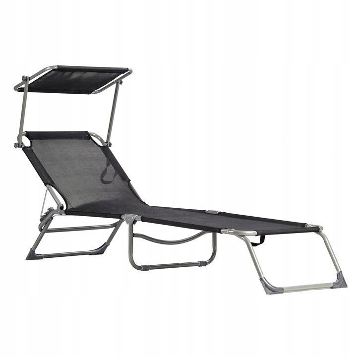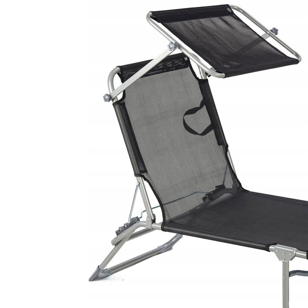 LEŻAK LEŻANKA FOTEL OGRODOWY SKŁADANY KRZESŁO Z REGULOWANYM DASZKIEM CZARNY