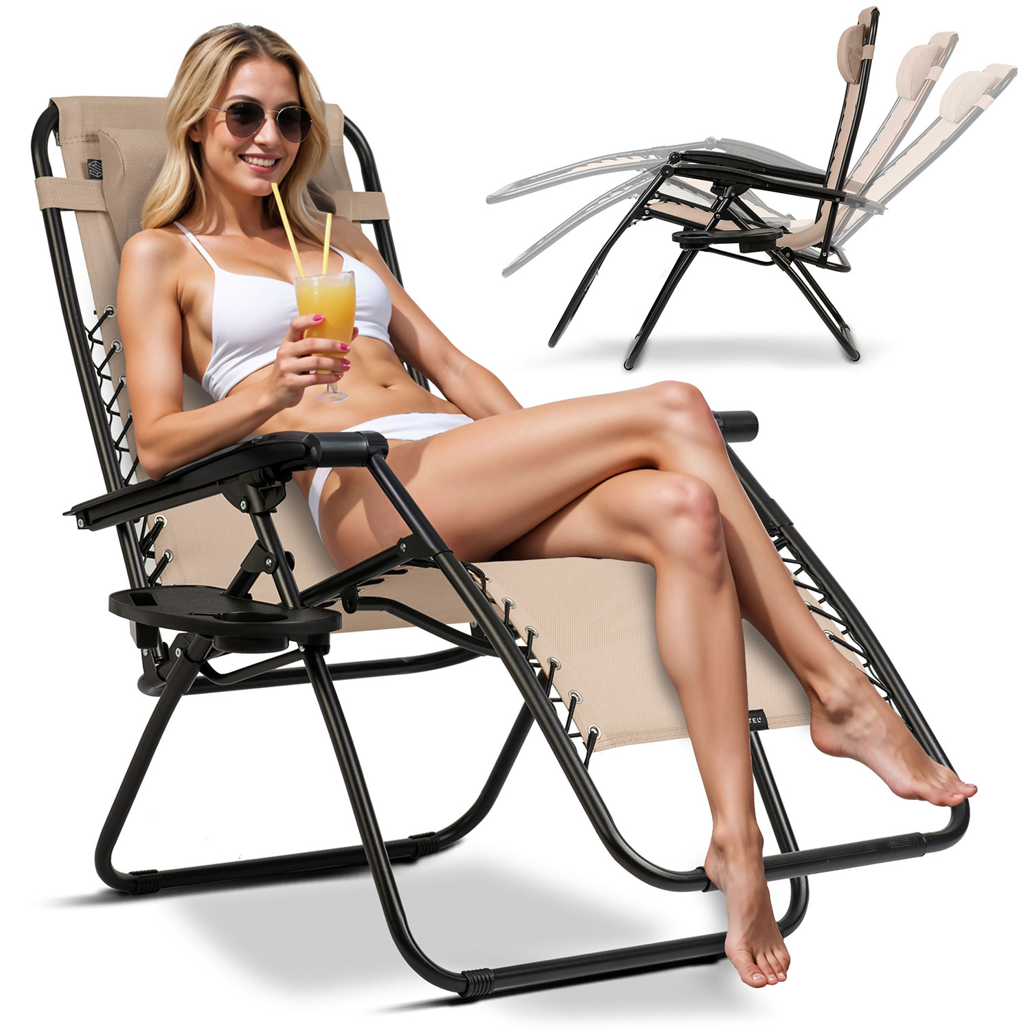 Leżak ogrodowy składany z poduszką Sofotel ChillWell beżowy
