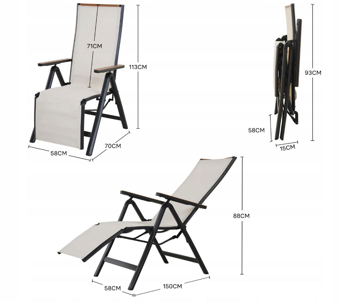 Leżak składany Grand Patio, krzesło ogrodowe z funkcją rozkładania