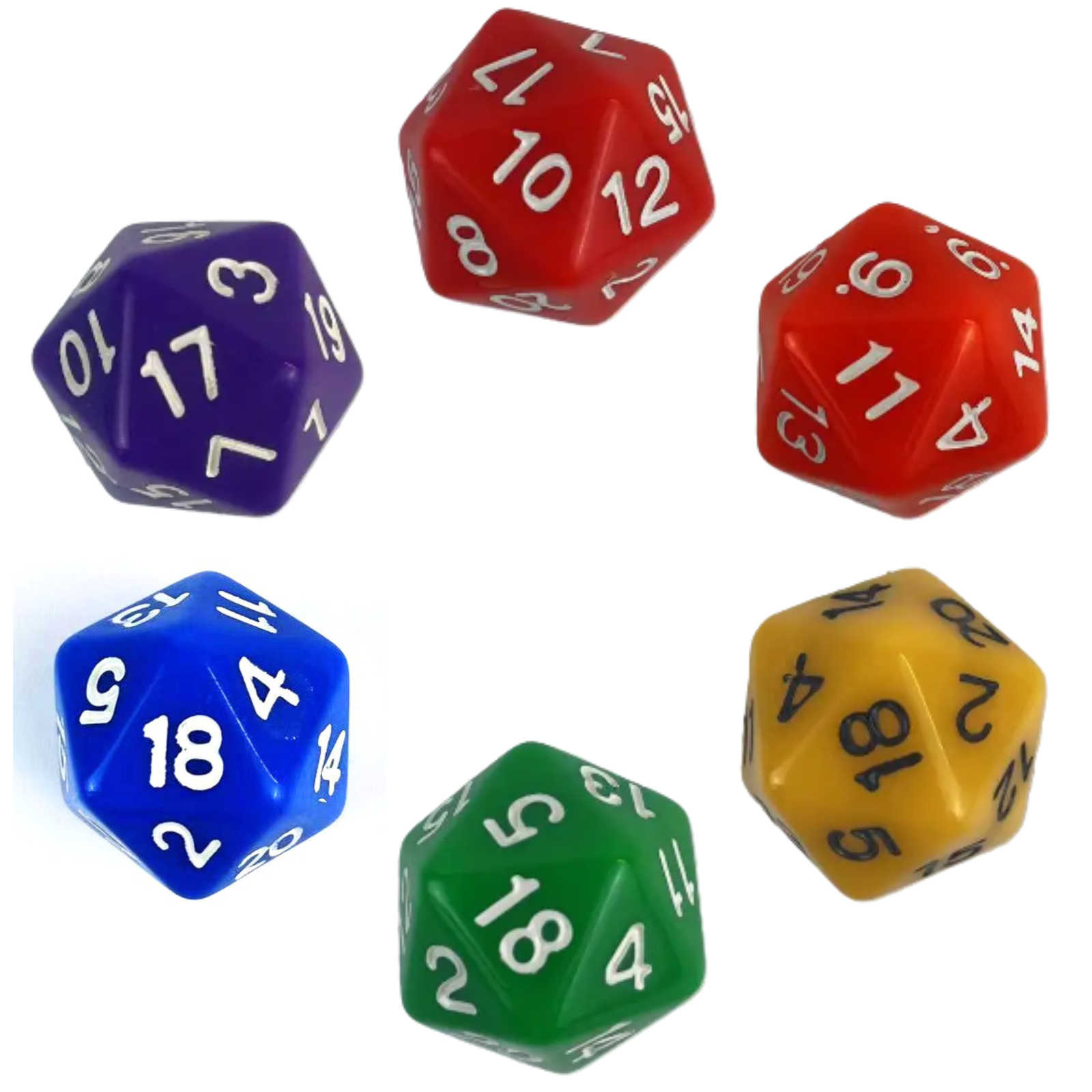 Tęczowy zestaw zawierający 6 kostek K20.