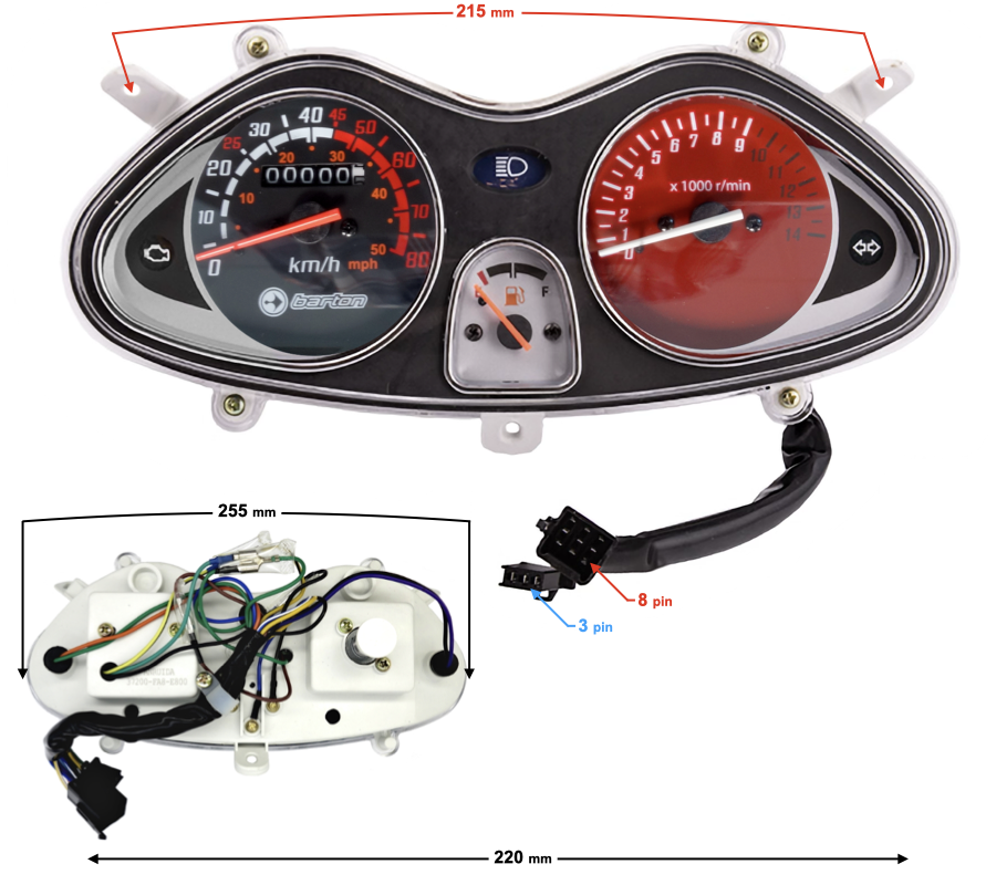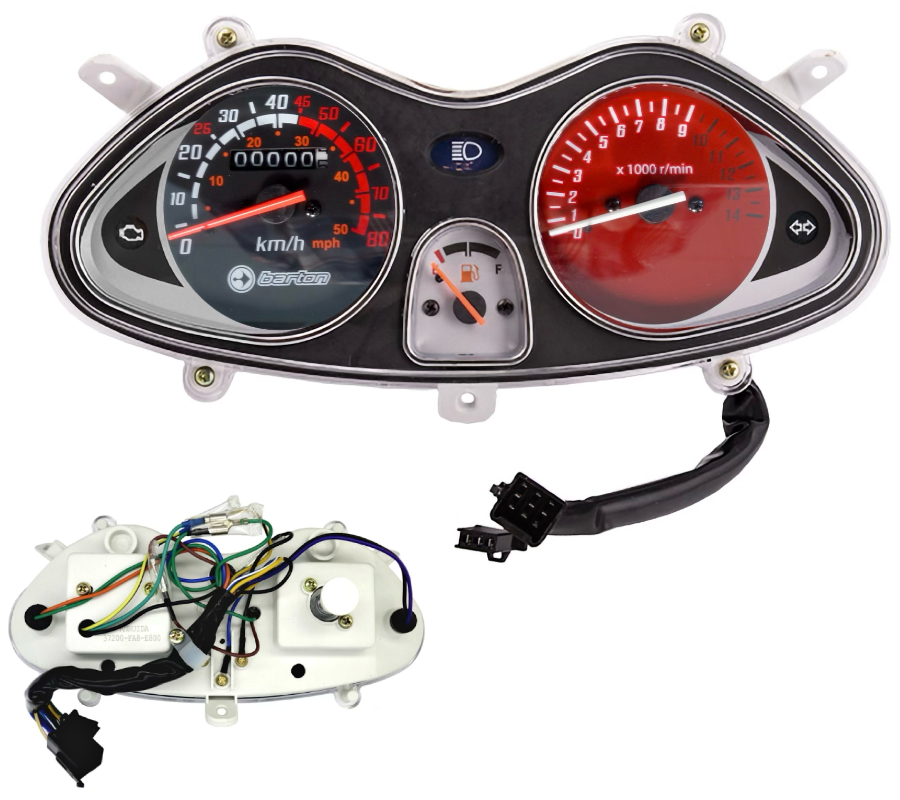Licznik przeznaczony do modelu Falcon 50 z silnikiem zgodnym z normą E5, zapewnia precyzyjny odczyt parametrów eksploatacyjnych pojazdu. Konstrukcja panelu charakteryzuje się odpornością na warunki atmosferyczne i drgania, co gwarantuje stabilność wskazań i długotrwałą niezawodność. Jego funkcjonalność jest kluczowa dla monitorowania stanu technicznego i bezpieczeństwa jazdy. Przed instalacją należy zweryfikować kompatybilność z konkretnym rocznikiem i konfiguracją elektryczną pojazdu.