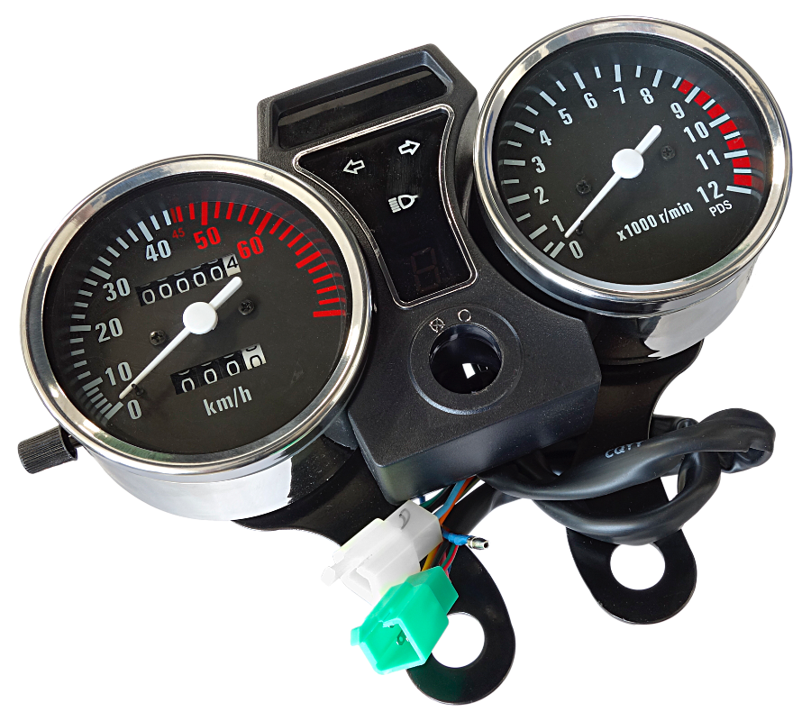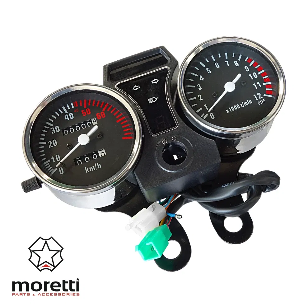 - funkcje: prędkościomierz, obrotomierz, licznik km dzienny i całkowity, kontrolki kierunkowskazów i świateł drogowych, wyświetlacz biegów