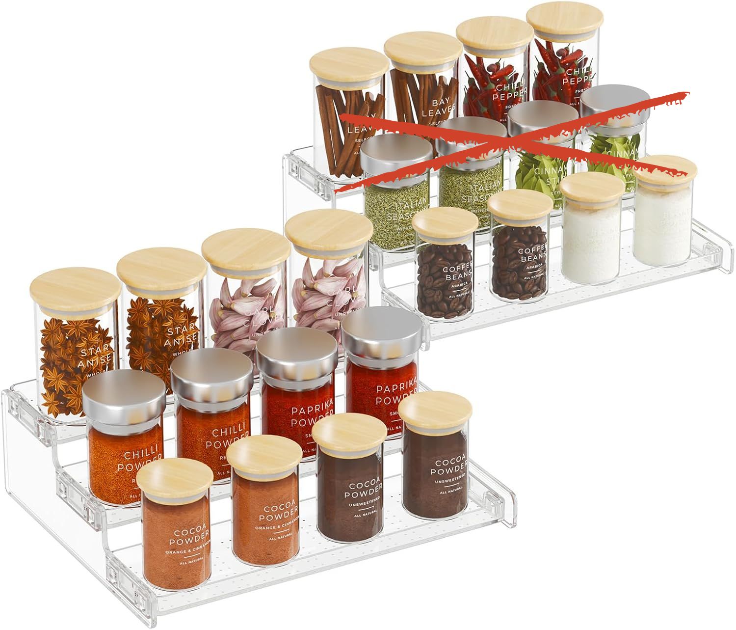 - Funkcjonalny i wszechstronny: ten organizer na przyprawy jest idealny do organizowania butelek, puszek i innych przypraw w szafkach kuchennych i na blatach. Może być również używany w różnych pomieszczeniach w domu, takich jak utrzymywanie porządku w materiałach biurowych na biurku, organizowanie kosmetyków i przyborów toaletowych w łazience lub sortowanie dzieł sztuki i rzemiosła w pokoju zabaw dla dzieci.