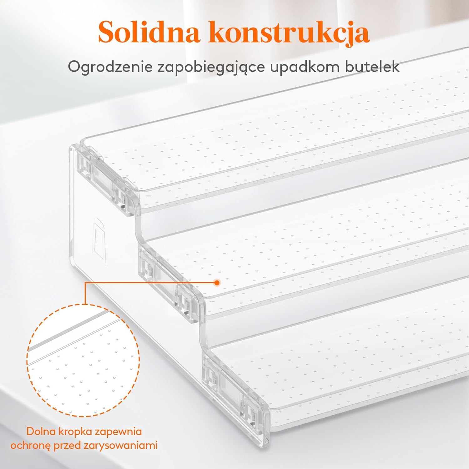 - Solidna konstrukcja: Pionowy organizer na przyprawy do szafki ma otaczające ogrodzenia na każdym poziomie i zaokrągloną konstrukcję na podłodze każdej warstwy. Zapewnia to bezpieczne i stabilne przechowywanie słoików i butelek, zapobiegając wszelkim poślizgom lub pęknięciom. Możesz mieć pewność, że Twoje przedmioty są niezawodnie chronione, zapewniając Ci spokój ducha.