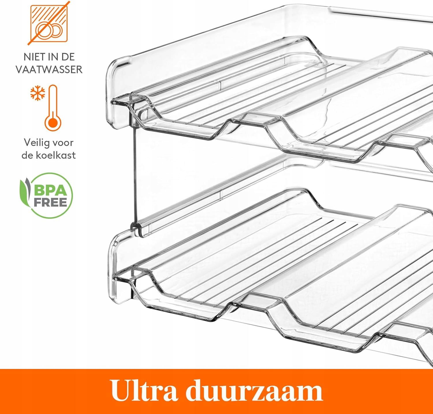 Piętrowa konstrukcja – zestaw 3 półek mieści po 3 butelki na każdej. Półki można ustawiać jedna na drugiej, oszczędzając miejsce. Butelki są stabilne, nie toczą się i łatwo je wyjąć. Sprawdzi się też w lodówce do chłodzenia napojów.
