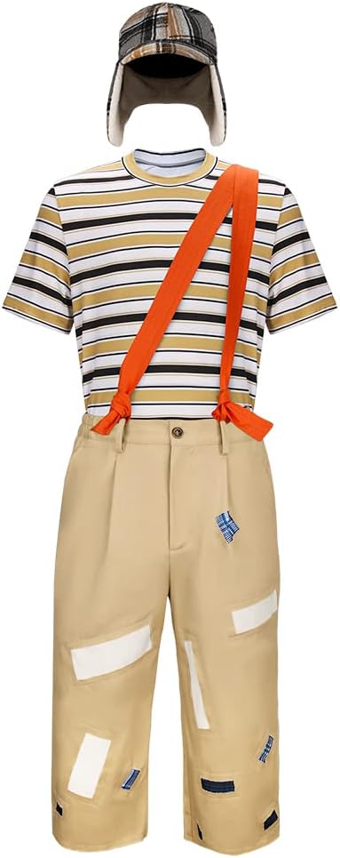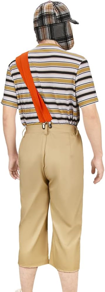 LIKUNGOU Męski zestaw kostiumów El Chavo Cosplay Strój z lat 80. Vintage T-shirt, spodnie i kapelusz na Halloween Karnawał Party Odgrywanie ról Odzież codzienna