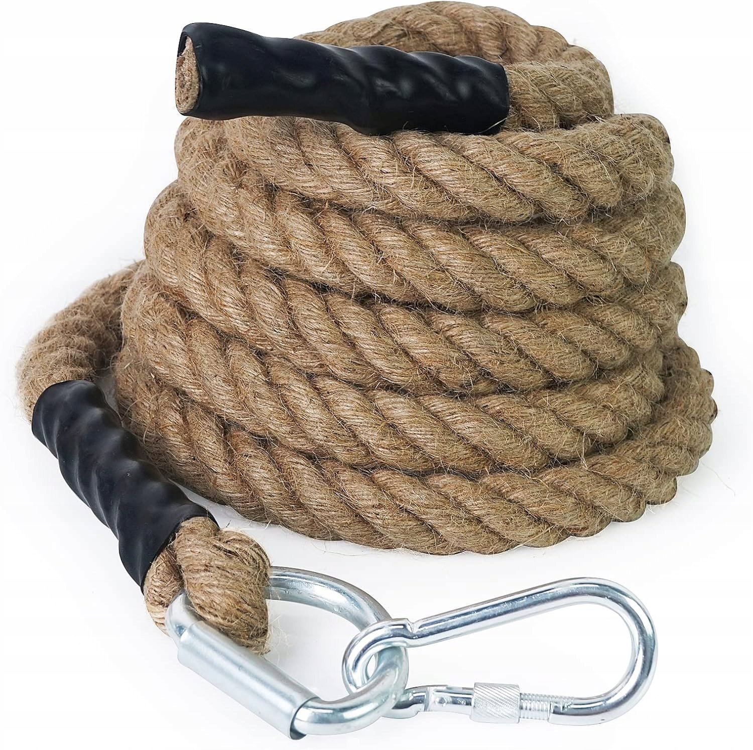 Aoneky Lina Wspinaczkowa na Siłownię z Hakiem - 30/40/50mm, 3-9M, Lina Sportowa z Juty do Treningu Siłowego Mięśni Fitness, Lina do Ćwiczeń do Siłownię Domu Garażu Wewnątrz i na Zewnątrz