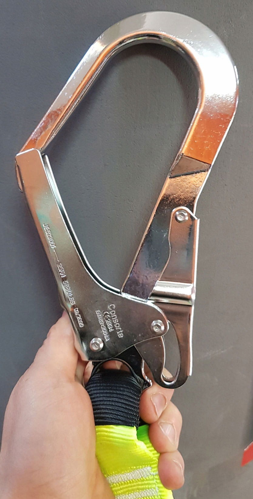 Końce zespołu amortyzującego zakończone są dwuzapadkowymi zatrzaśnikami z automatyczna blokada zamka, wykonanymi z wysokogatunkowej stali, zgodnymi z normą EN 362.