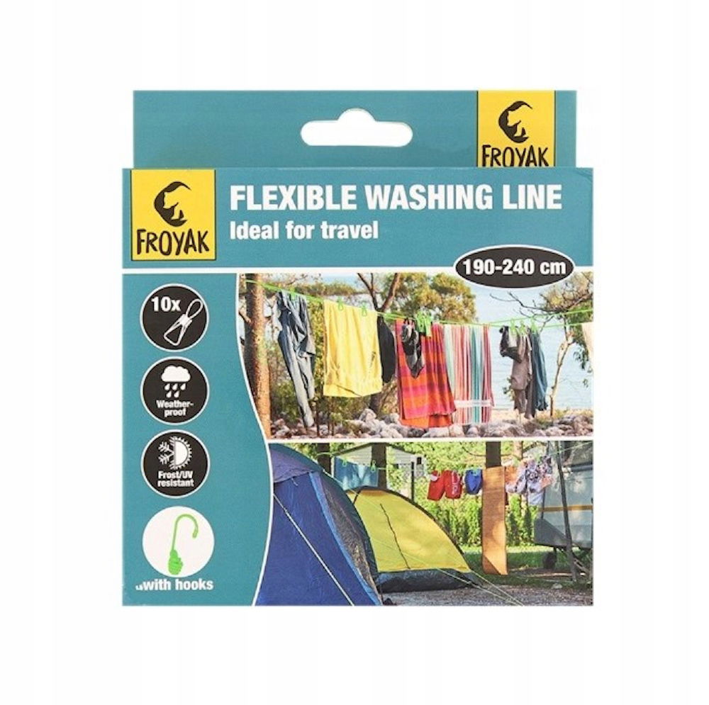 Zastosowanie: Elastyczna lina do wieszania prania Froyak to niezastąpiony pomocnik podczas podróży, kempingów, wyjazdów na łono natury oraz wszędzie tam, gdzie potrzebujesz szybko i wygodnie rozwiesić pranie. Haczyki zapewniają łatwe mocowanie, a powlekane zaczepy utrzymują pranie na miejscu, nawet w trudnych warunkach.